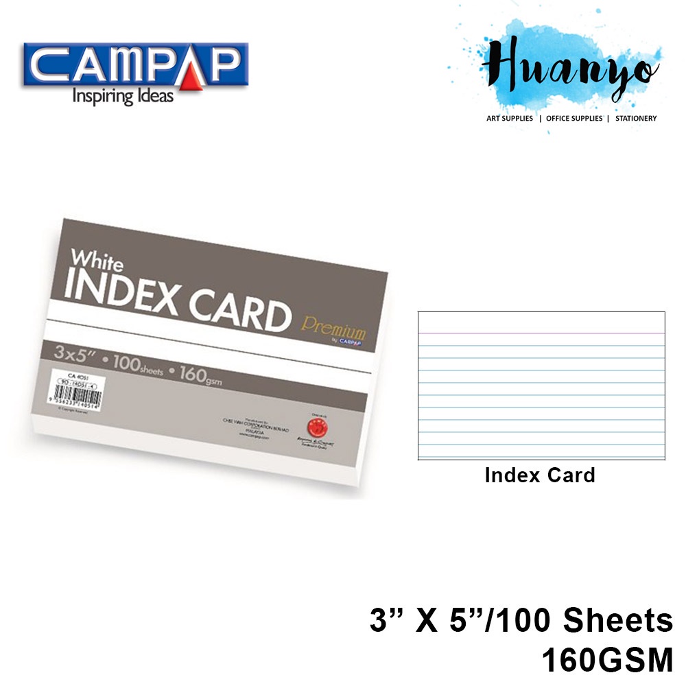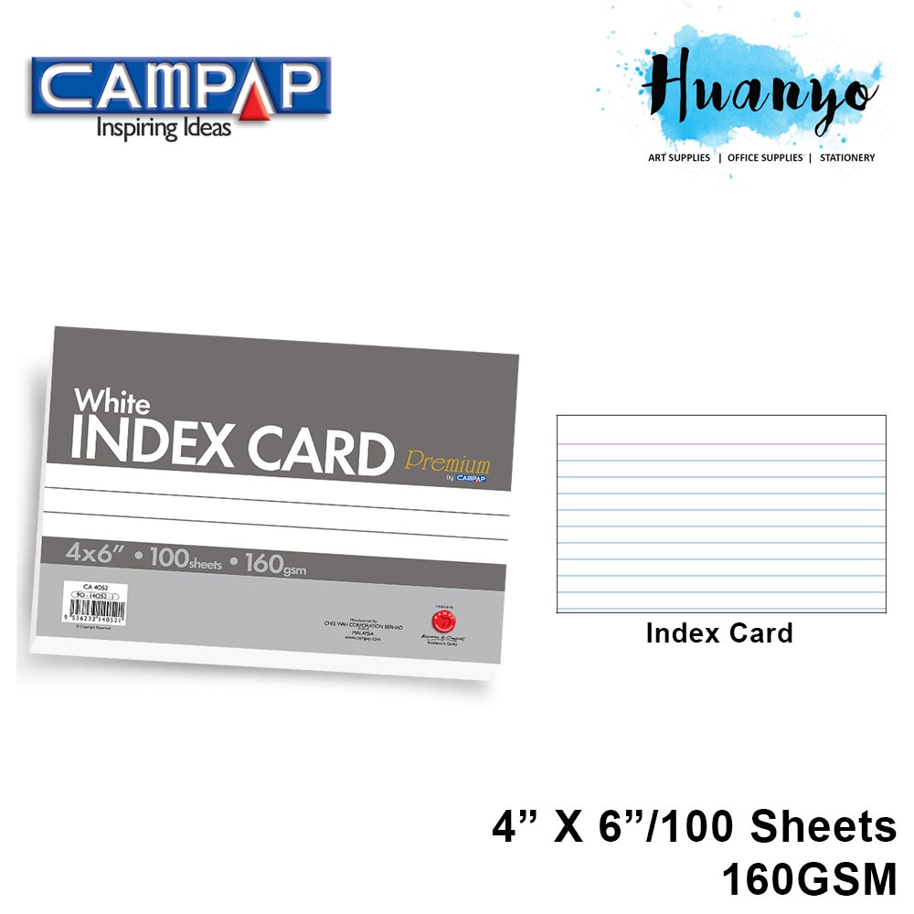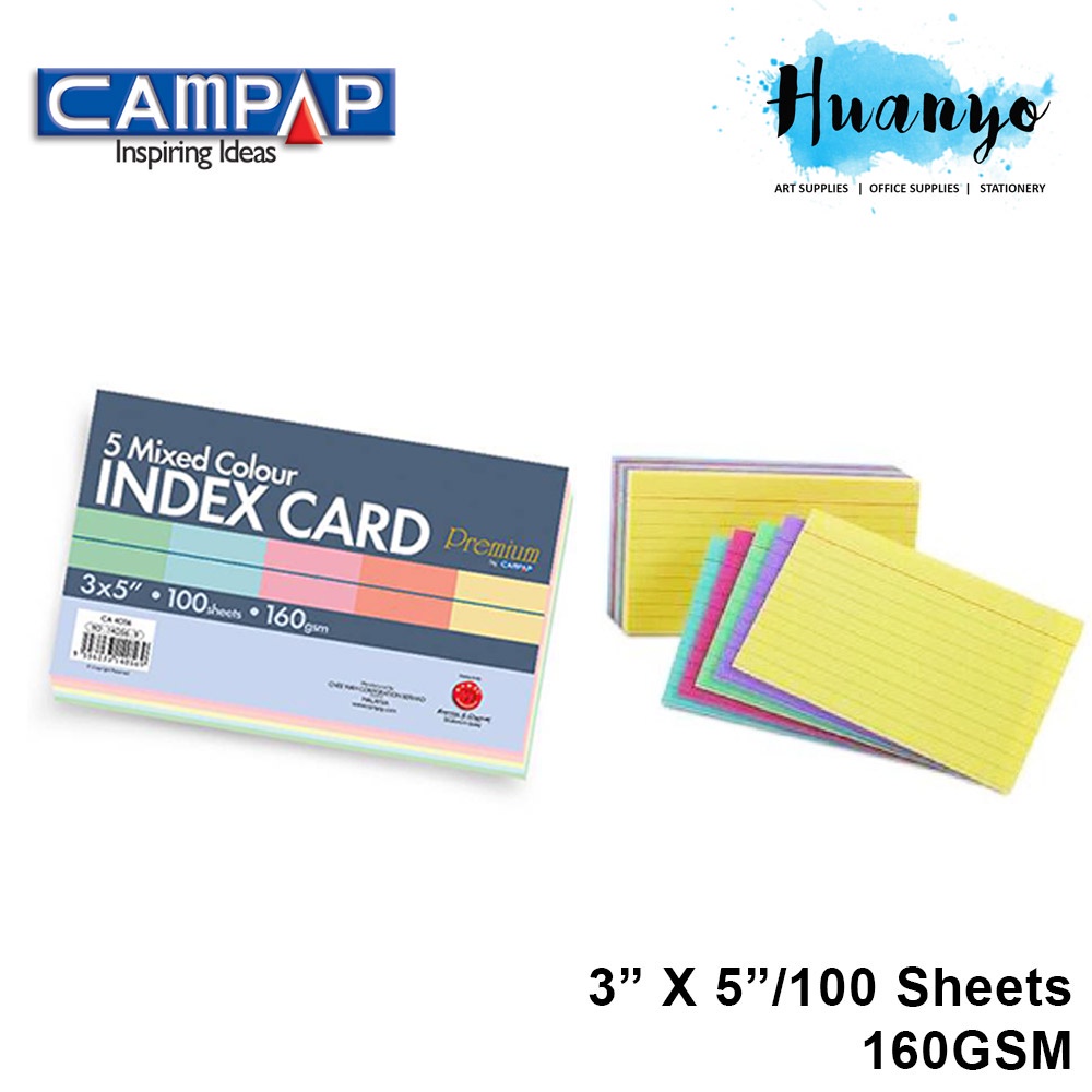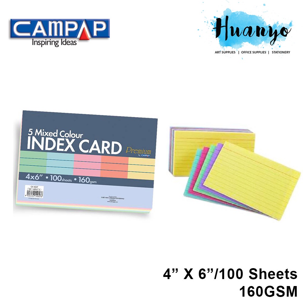 Campap Premium Index Card 3" X 5" / 4" x 6" Inches [White / 5 Mixed Colours Pack] (160GSM, 100 Sheets/Pack)