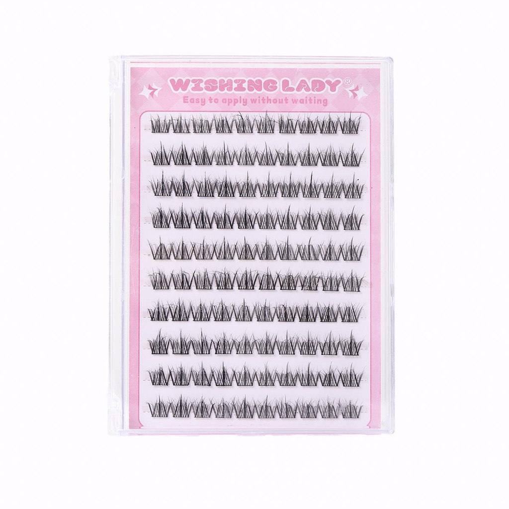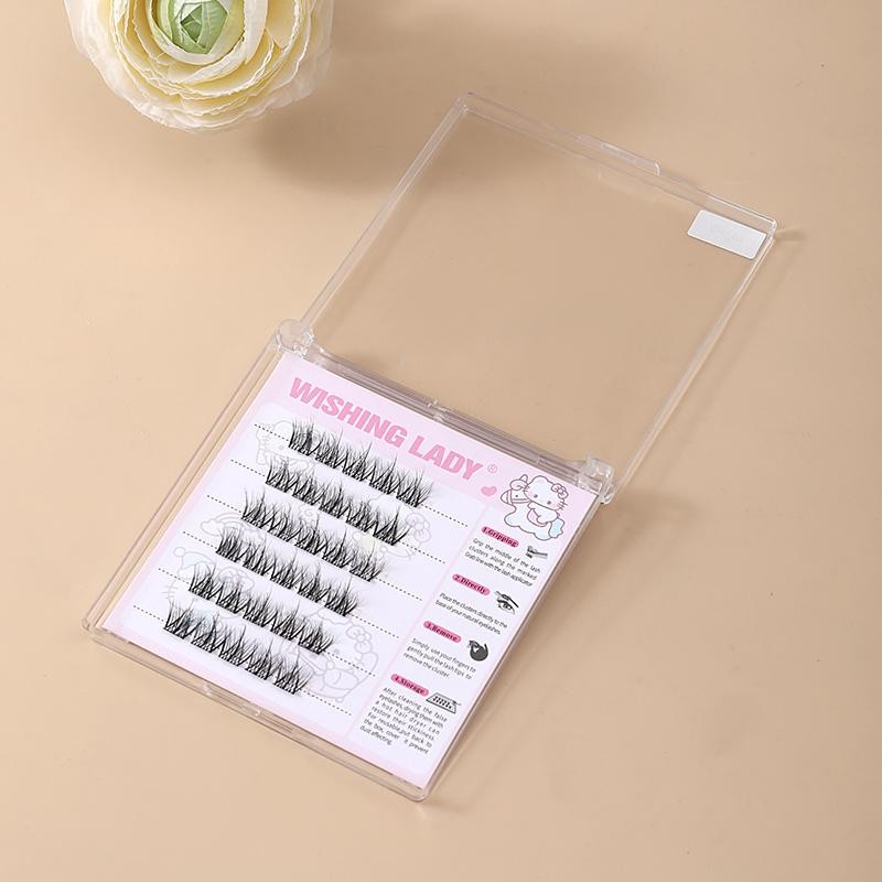 QY-19 WISHINGLADY 5D Messy Fluffy Style | Self-Adhesive Cluster Lashes | D-Curl Volume | No Glue Needed | 3s Quick Apply