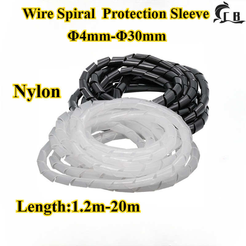 [CB-GJL] Black/White Nylon, Wire Spiral Protection Sleeve, Φ4mm-Φ30mm, Insulating Cable Management Sleeve, Length 1.2m-20m