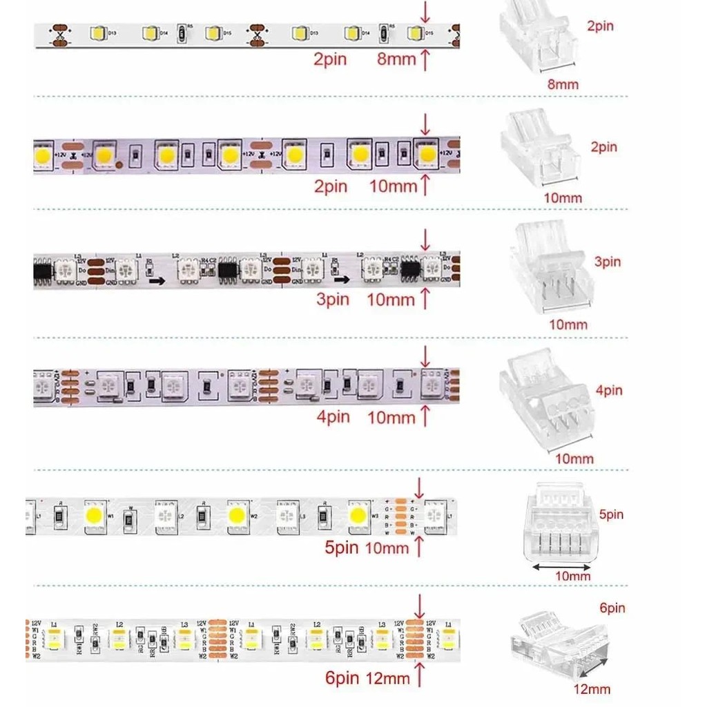 LED Connector 8mm 10mm 12mm 2Pin 3Pin 4Pin 5Pin 6Pin LED Strip To Strip Strip To Wire for SMD LED Strip Light Connectors Buckle