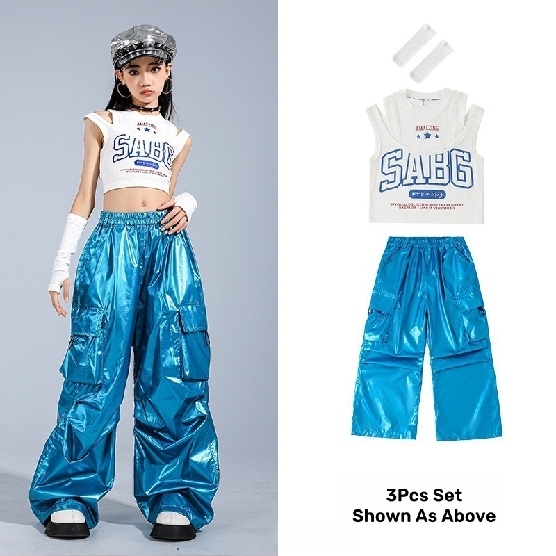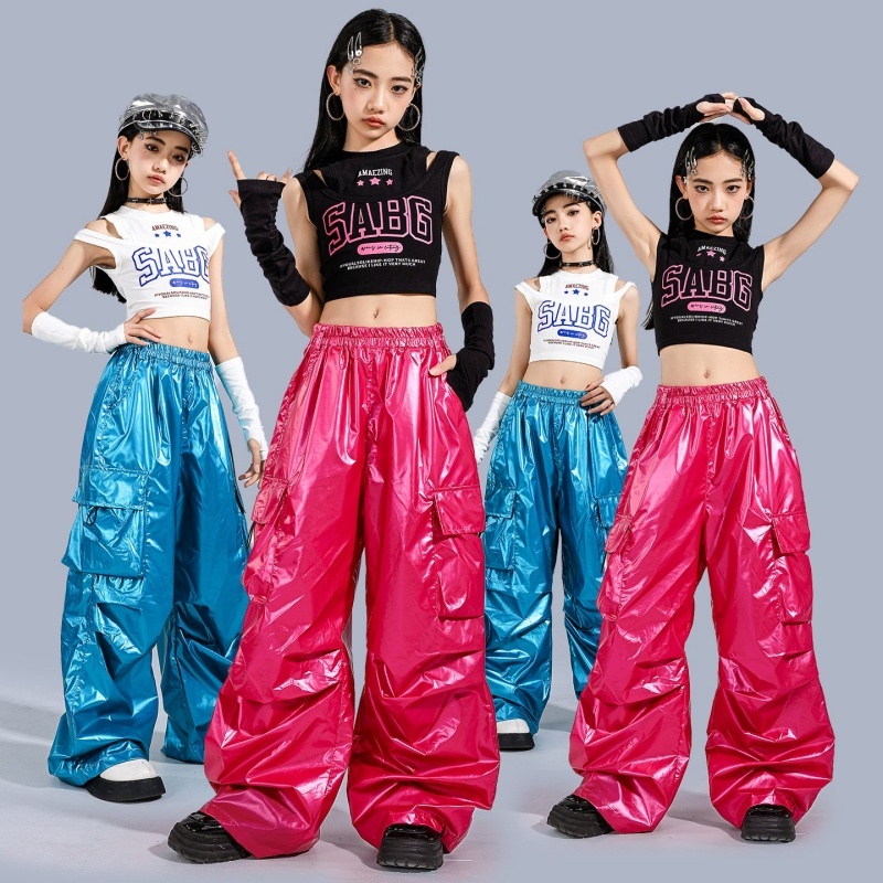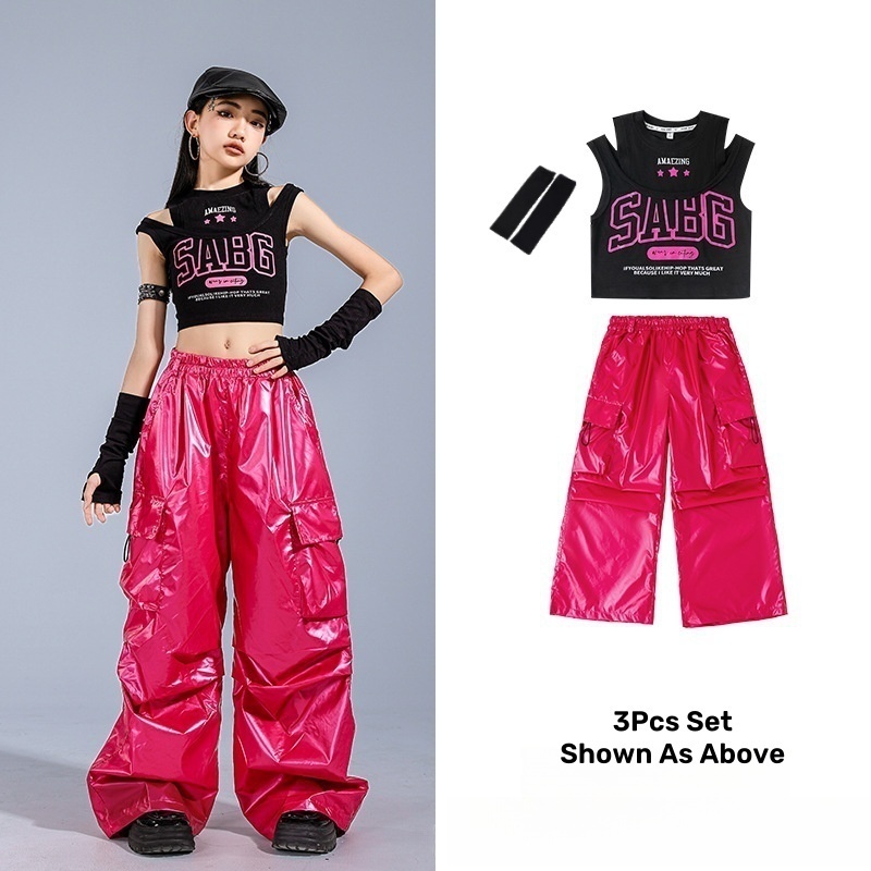 🔥Ready Stock🔥 Girls Jazz Dance Costumes / Children's Catwalk Costumes 女童爵士舞演出服 儿童街舞走秀服装 女团Jazz背心长裤