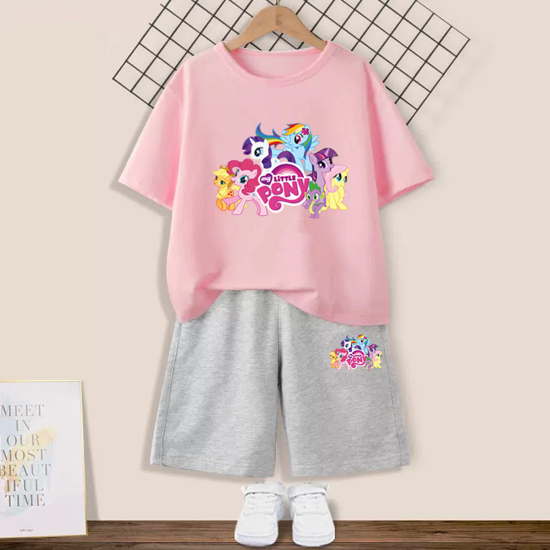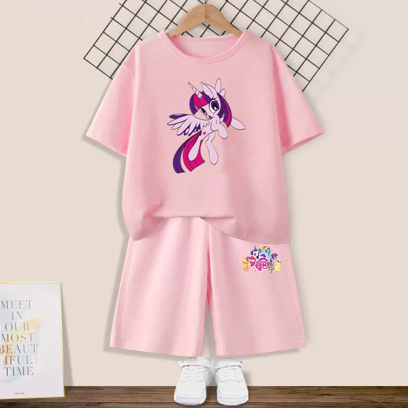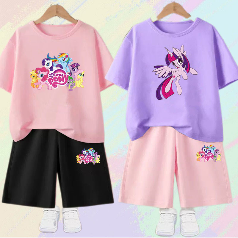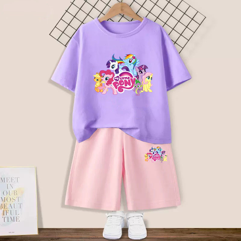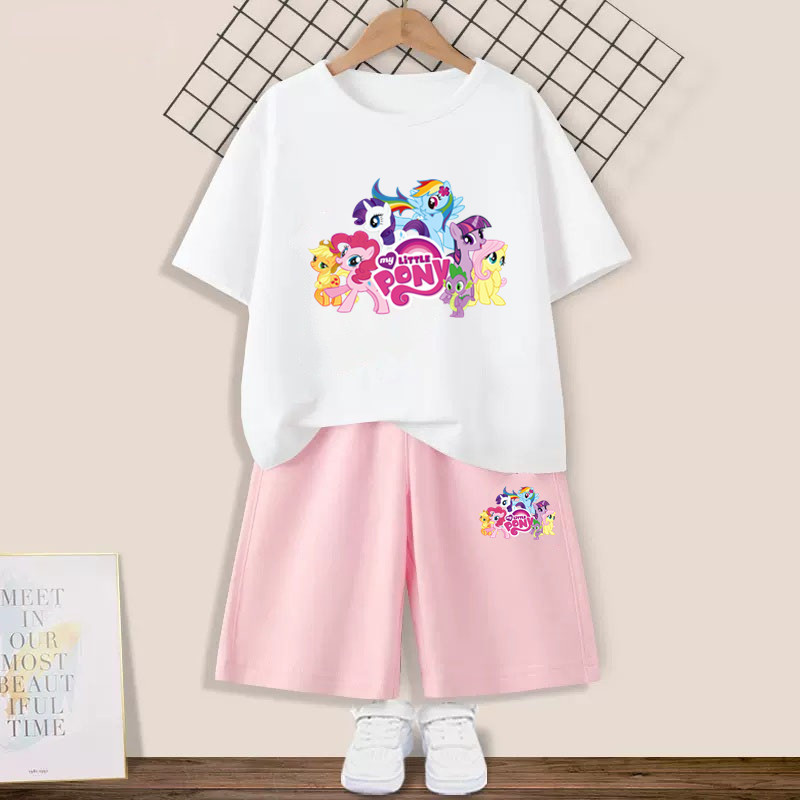 Girls' suit with my little pony pony Graphic T-shirt and Pink Shorts 2pcs Set Summer Girls Friendship is Magic Fashion Outfits