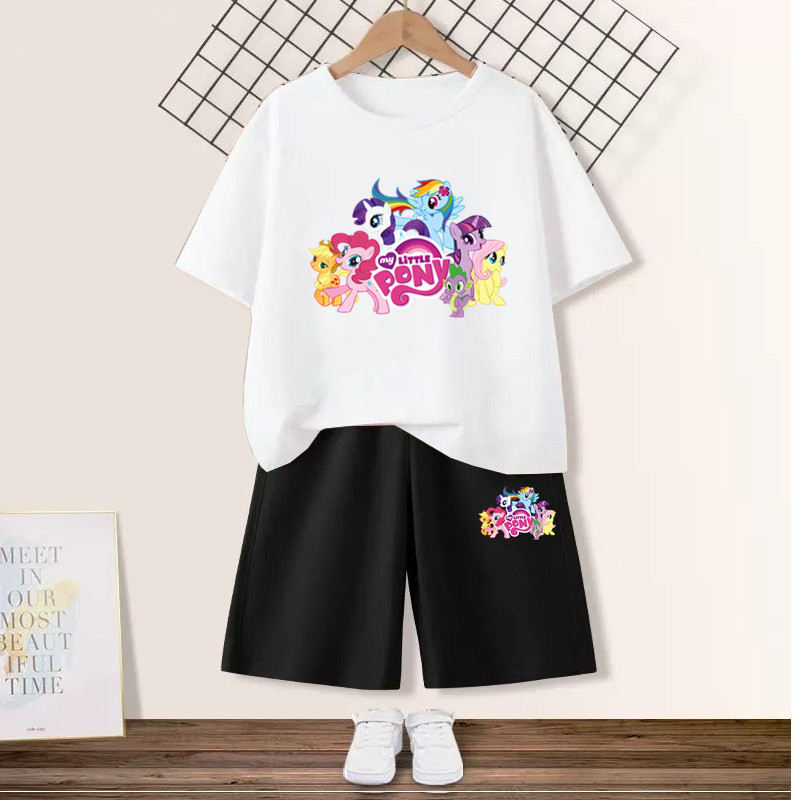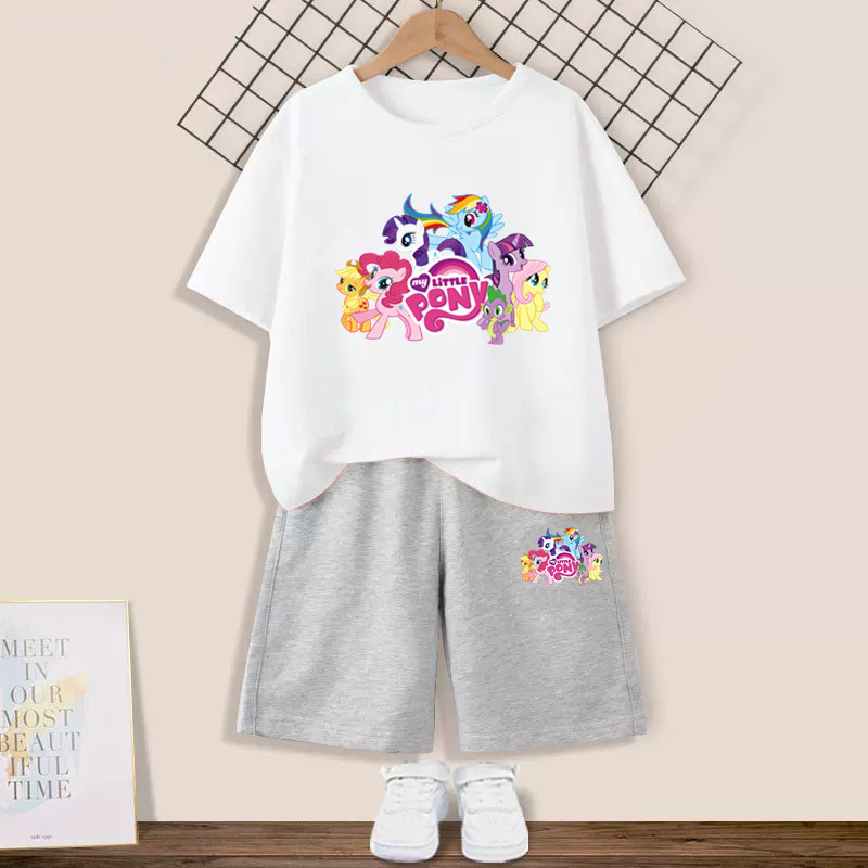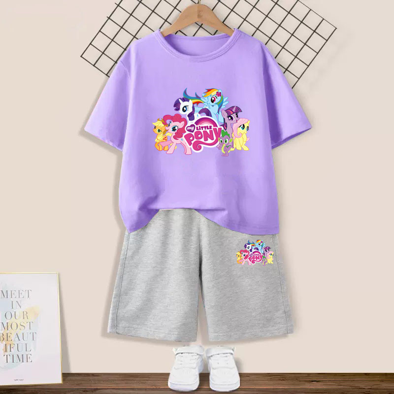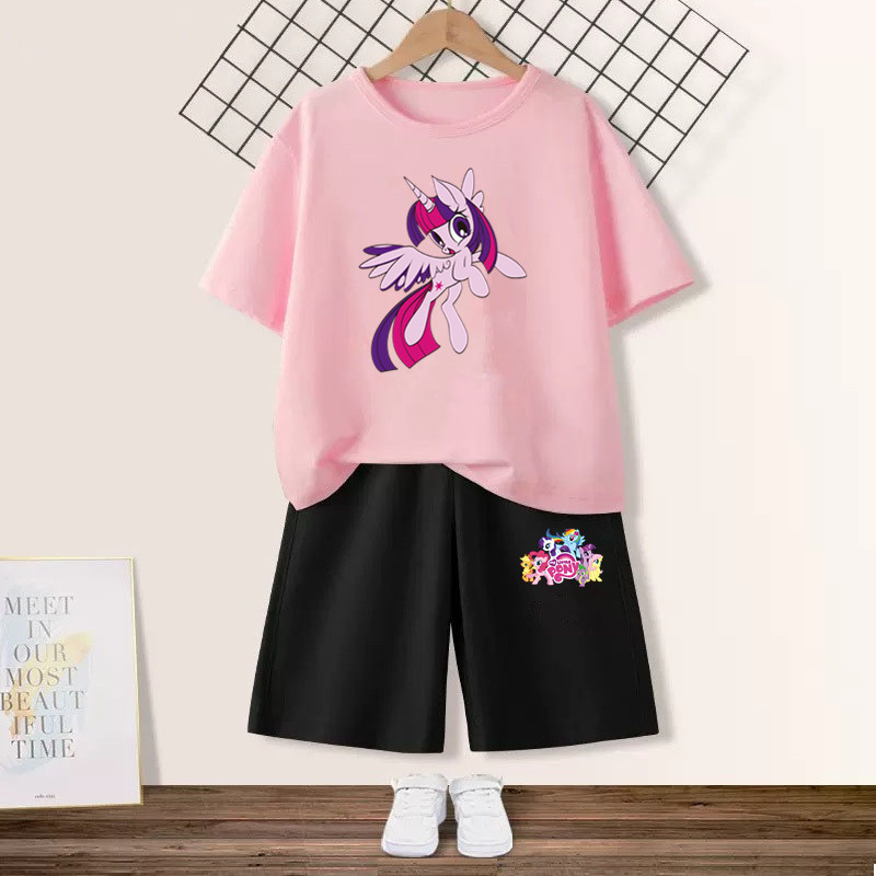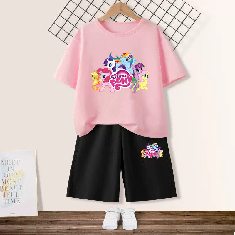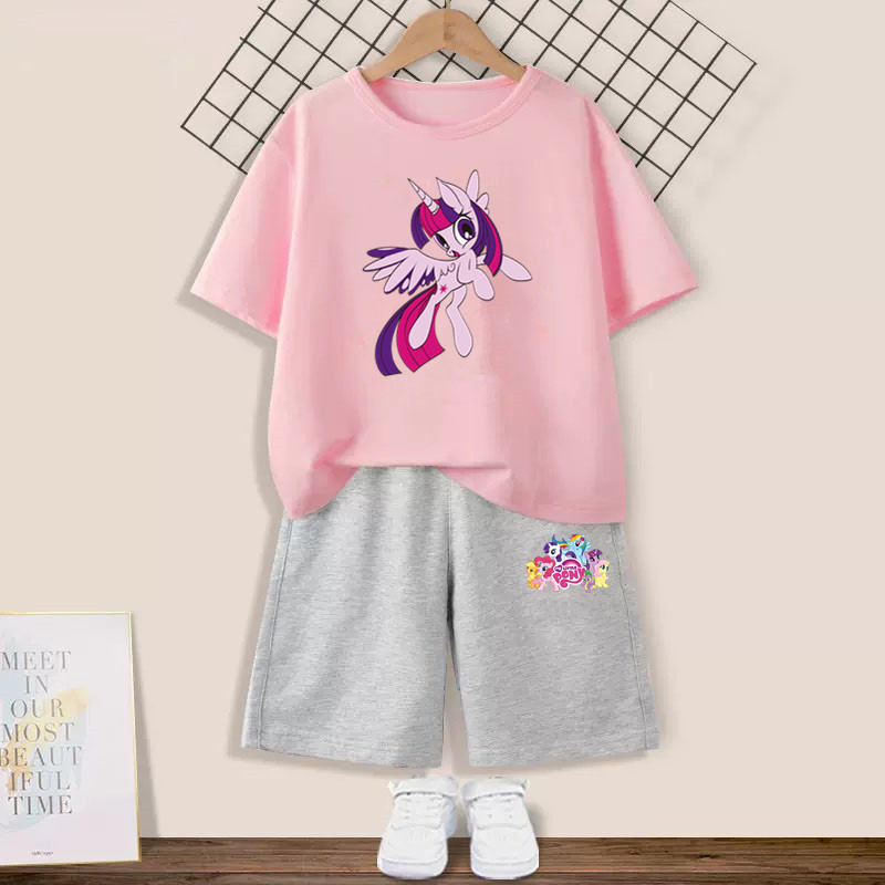 Girls' suit with my little pony pony Graphic T-shirt and Pink Shorts 2pcs Set Summer Girls Friendship is Magic Fashion Outfits