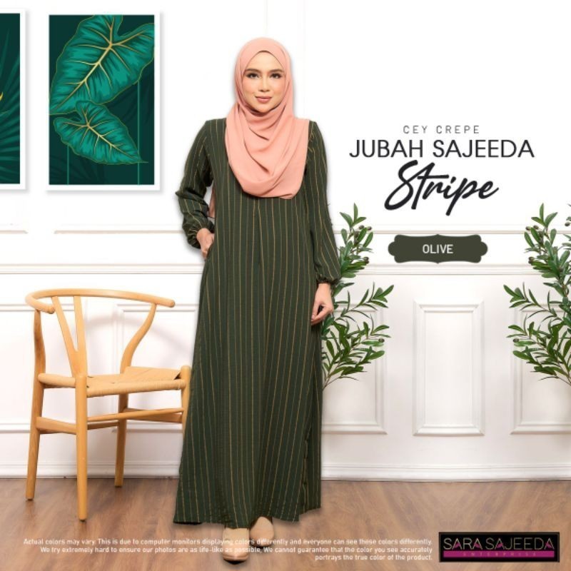 Jubah Viral Stripe Sajeeda Plus Size 2026- Ironless & Bergetah Fashio Muslimah