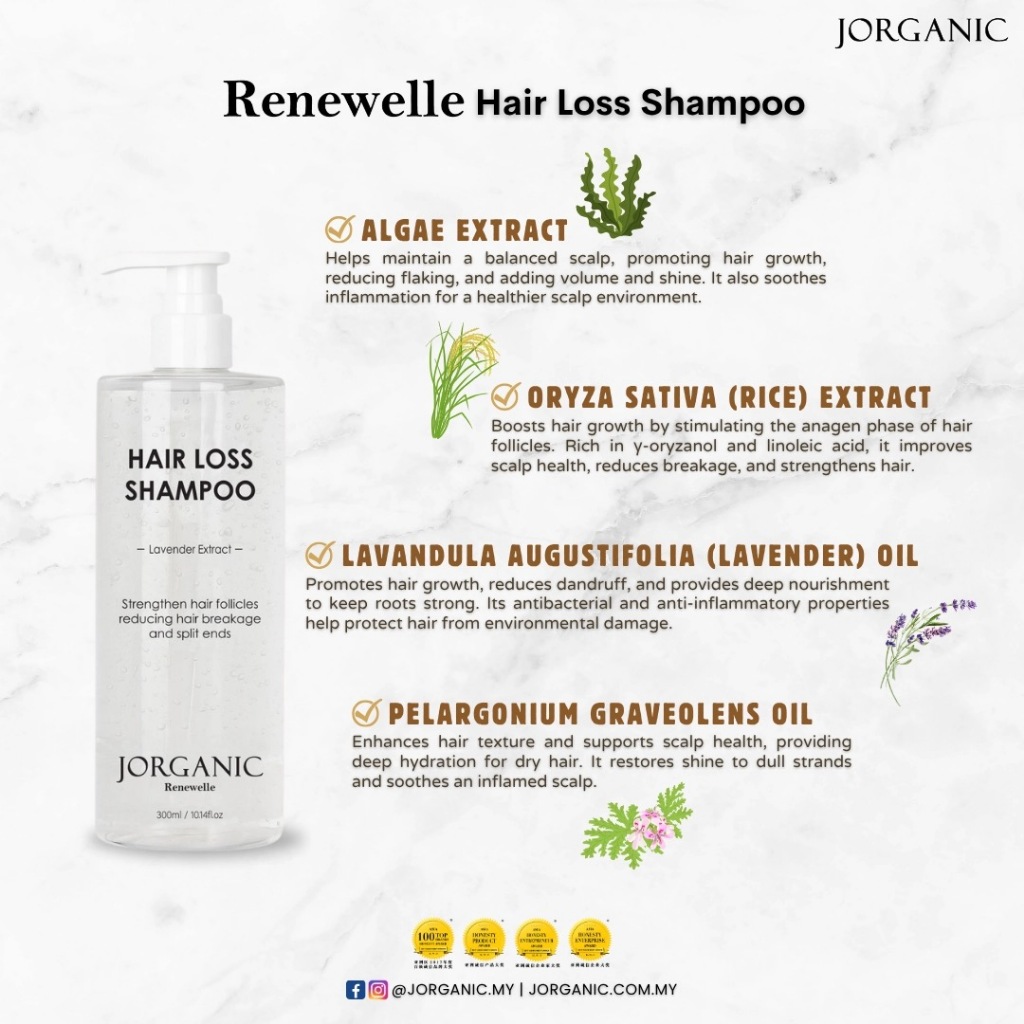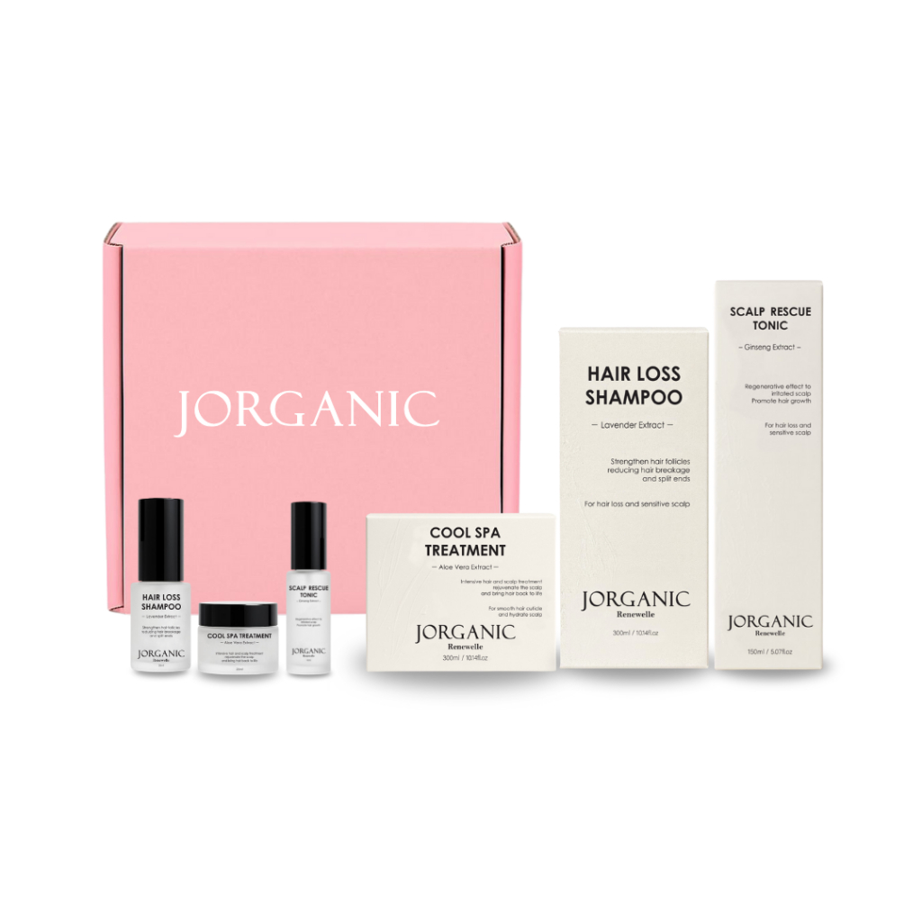 Jorganic Renewelle Hair Care Postpartum Hair Loss Shampoo / Cool Spa Treatment / Scalp Rescue Tonic Hair Growth