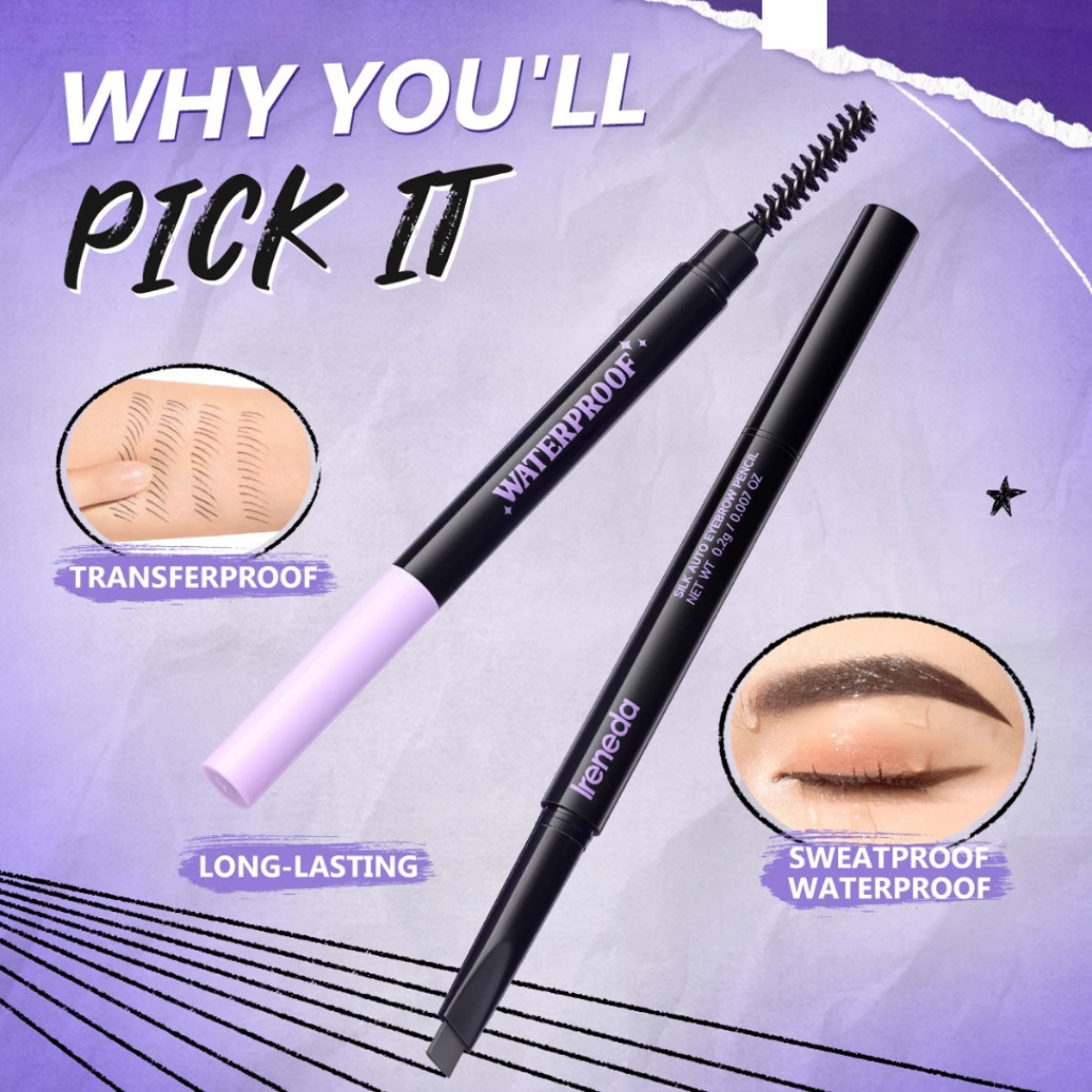 IRENEDA Eyebrow Pencil Auto IR-E09 Silk Smooth Pigmented Waterproof Sweatproof Long-lasting Easy