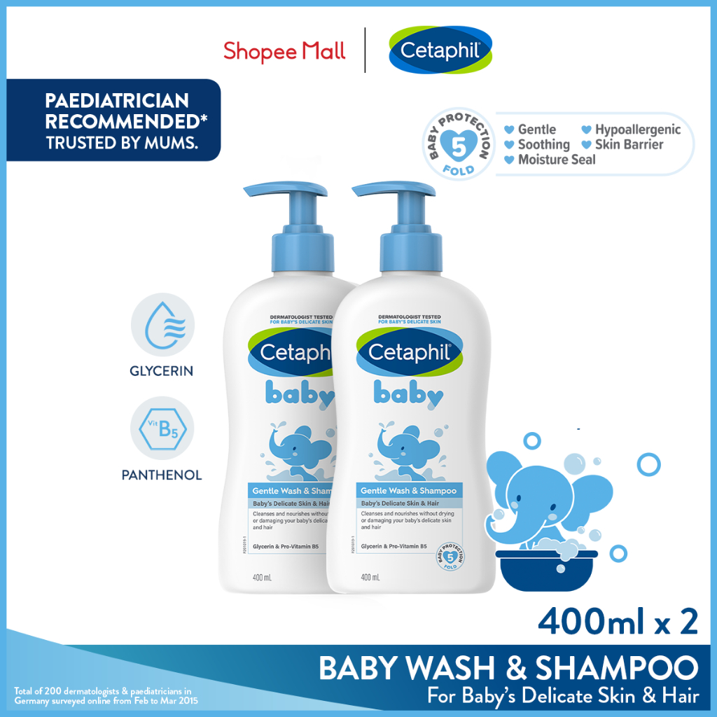 CETAPHIL BABY Wash & Shampoo with Glycerin & Panthenol 400ml [Head to Toe Gentle Cleansing Formula]