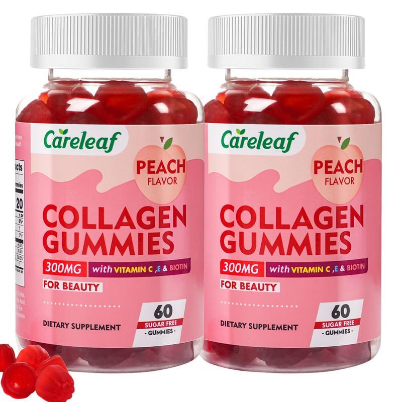 【 Buy 2 gift 1】Careleaf Collagen Gummies For Skin Hydration & Elasticity Peach Flavor Easy Daily Dose Luminous & Tightening Skin Care-60 Gummies