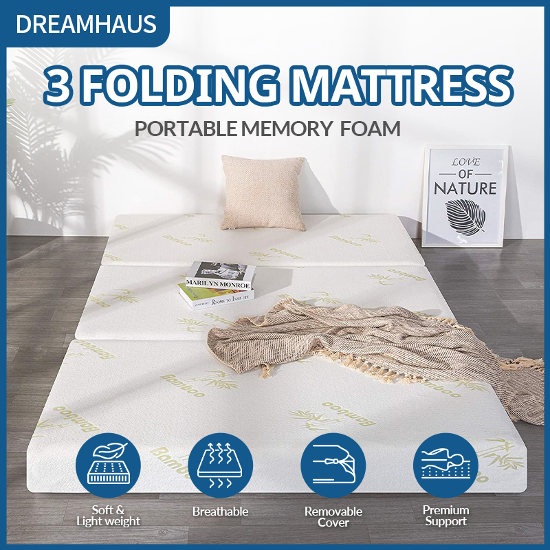 【SG Stock】3 Folding Memory Foam Mattress 2/3/4Inch Single Tatami Foldable Floor Mattress With Ultra Soft Removable Cover