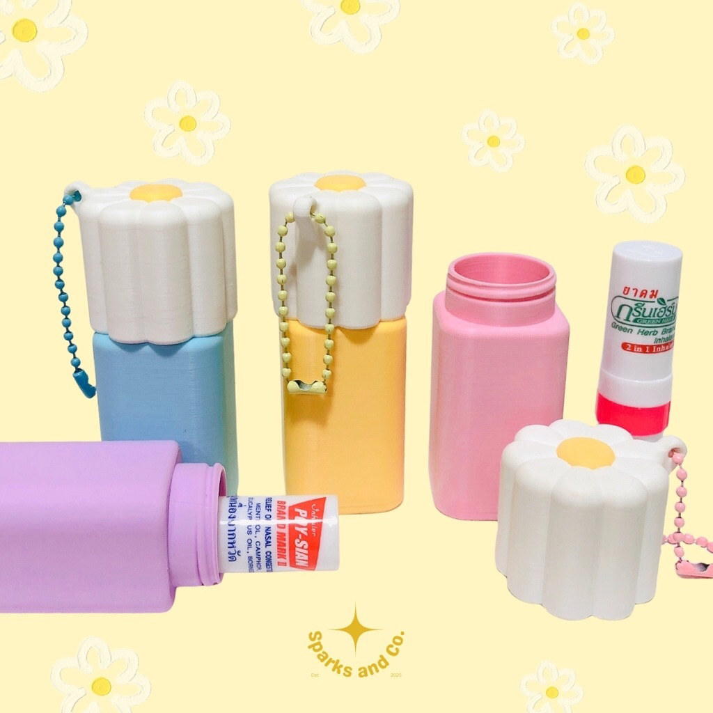 Daisy Flower Keychain Case for Inhalers, Lip Balms, Pills & Pocket Size Essentials | Sparks & Co. Inhaler Holder