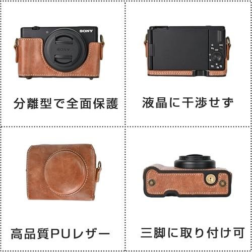 【Direct from Japan】 Sony VLOGCAM ZV1F Camera Case ITARUKEN ZV-1F Cover for zv1f zv-1f PU Leather Full Protection Type with Tripod Hole and Shoulder Strap, Faux Leather, Light Brown