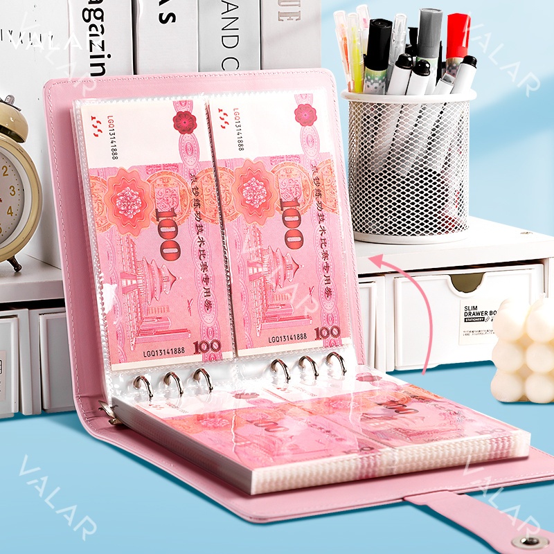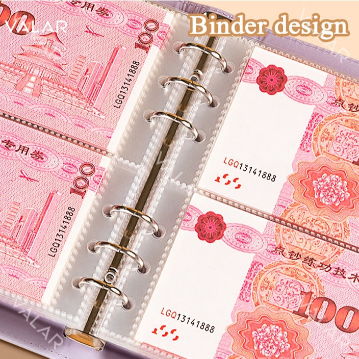 Ipon Challenge Booklet PU Leather Money Saving Binder with Envelopes Cash Album & Wallet Organizer