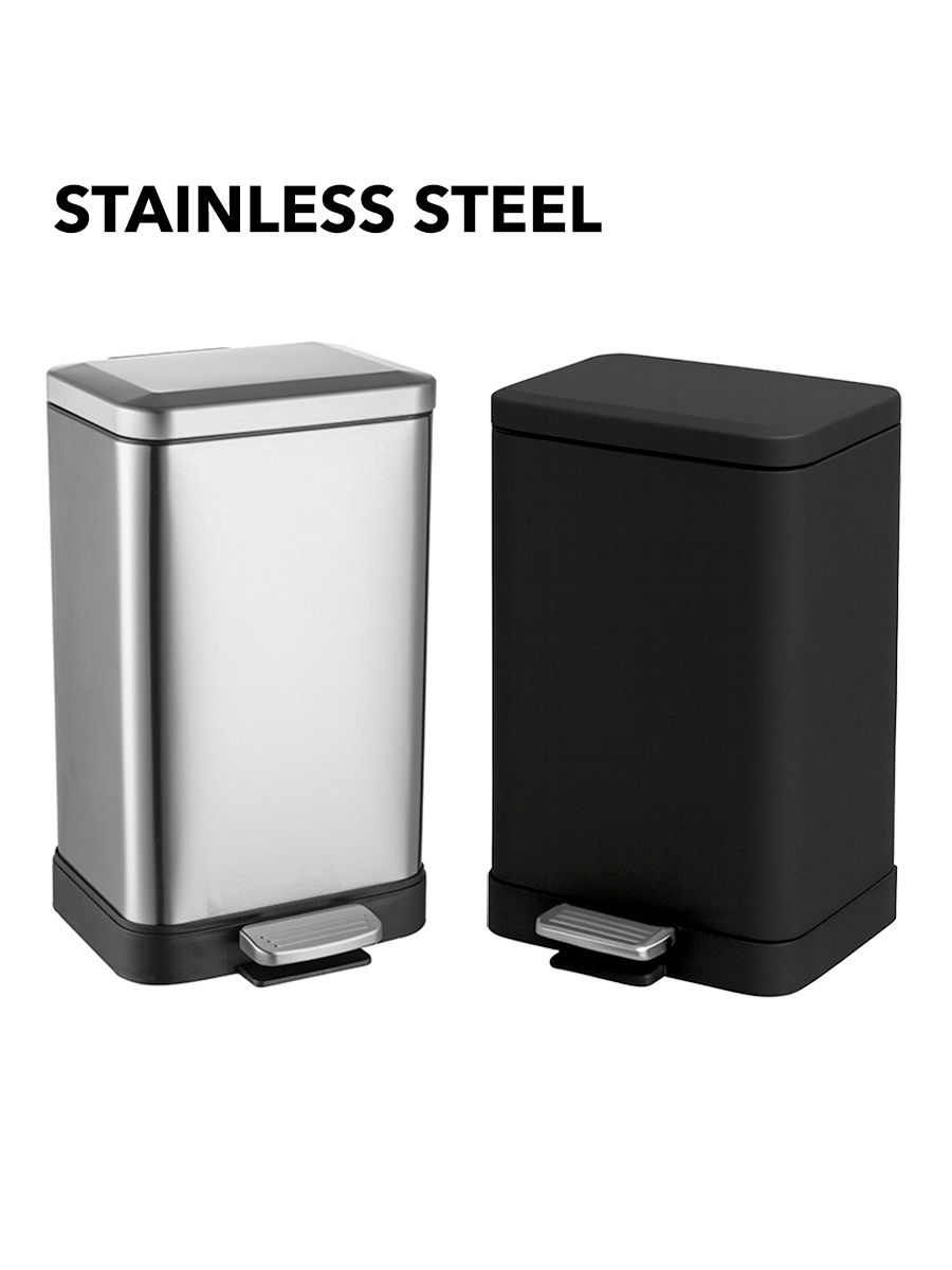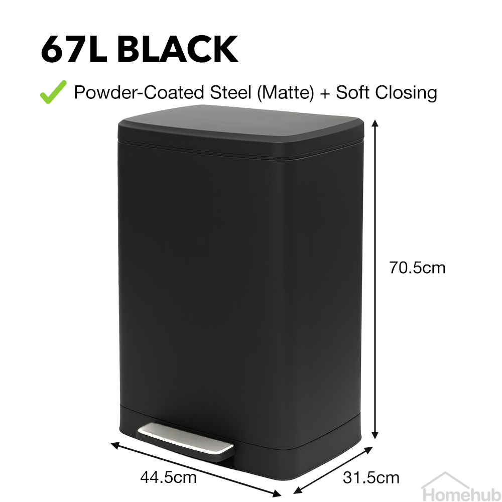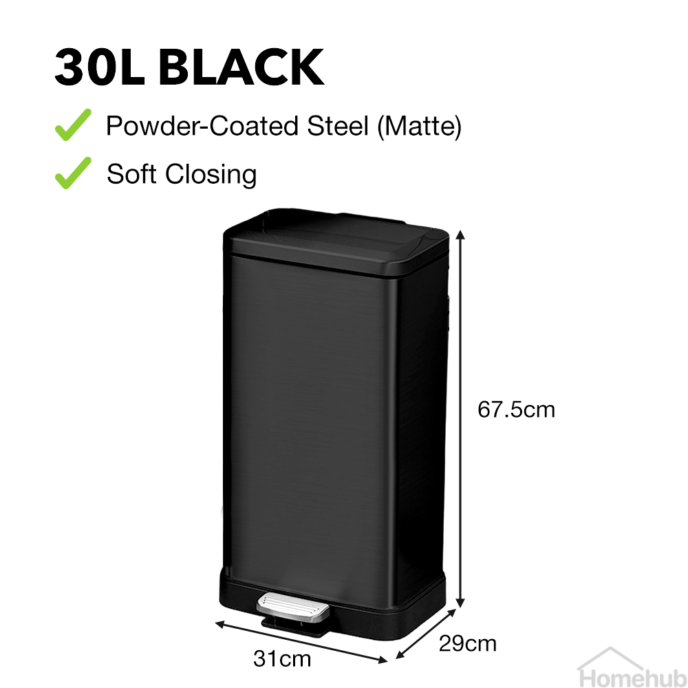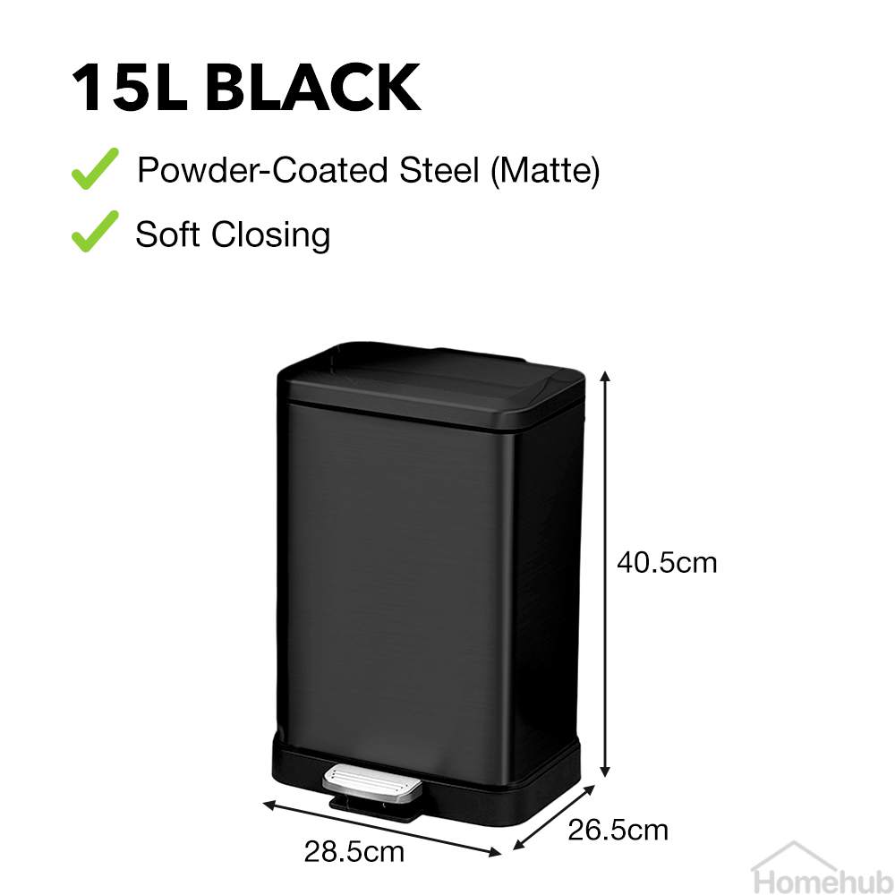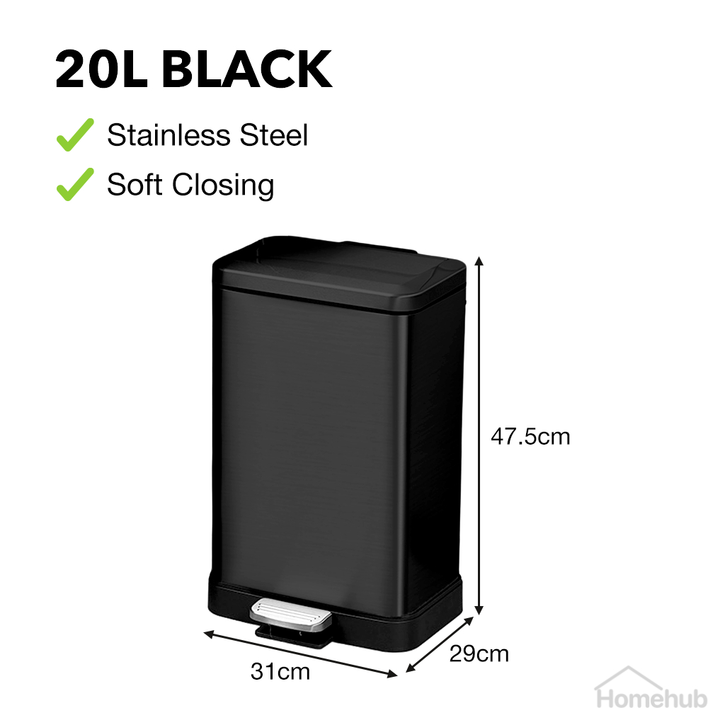 Livora Stainless Steel Dustbin / Black Rubbish Bin With Lid / For Kitchen / Large Garbage Waste Can 15L 20L 30L 50L