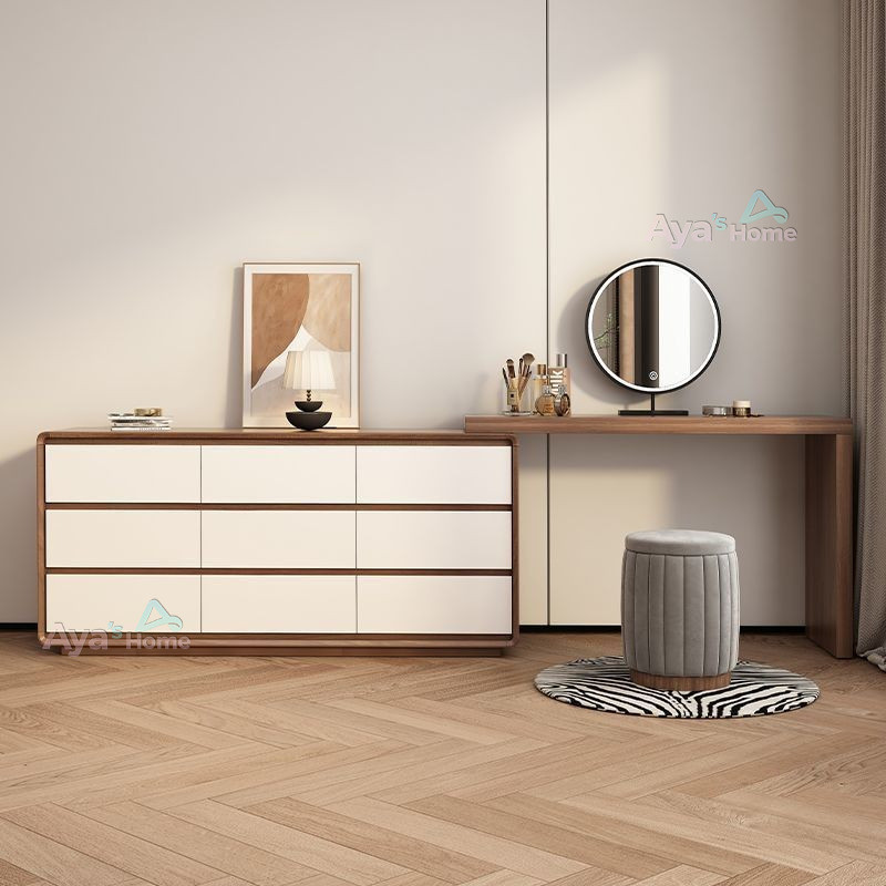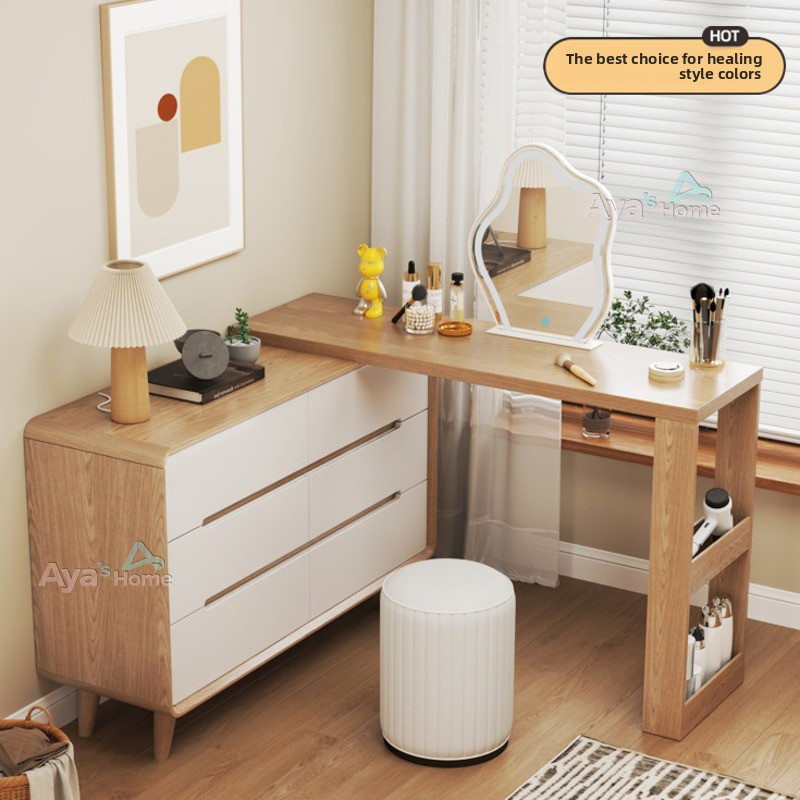 [23 Days of Pre-sales]AYA Dressing Table Makeup Table Burly wood Bedroom Simple Modern Chest of Drawers Integrated Chest of Drawers Small Apartment Vanity Table Corner Storage Cabinet