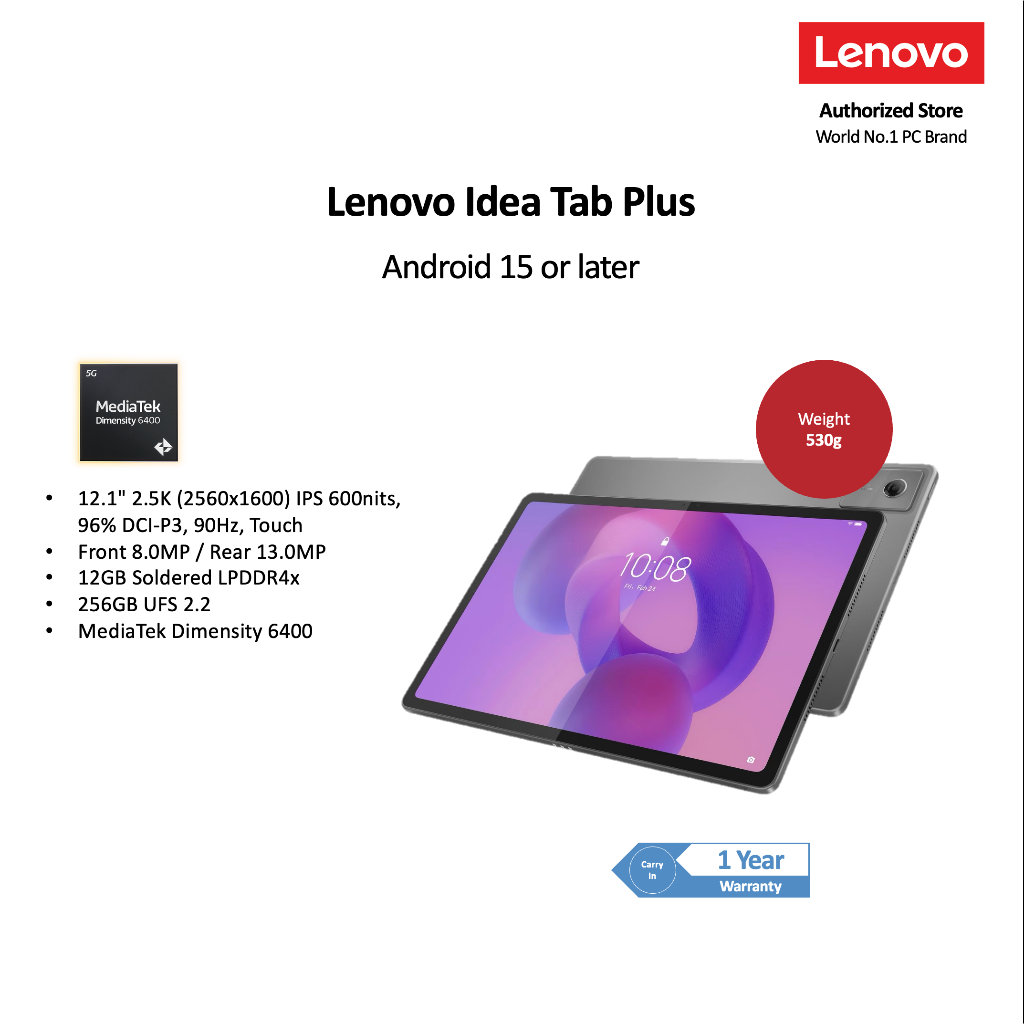 Idea Tab Plus with Tab Pen + Folio Case | ZAG70429SG/ZAGF0089SG | 12.1" 2.5K IPS | MediaTek Dimensity 6400 | 12GB | 256G