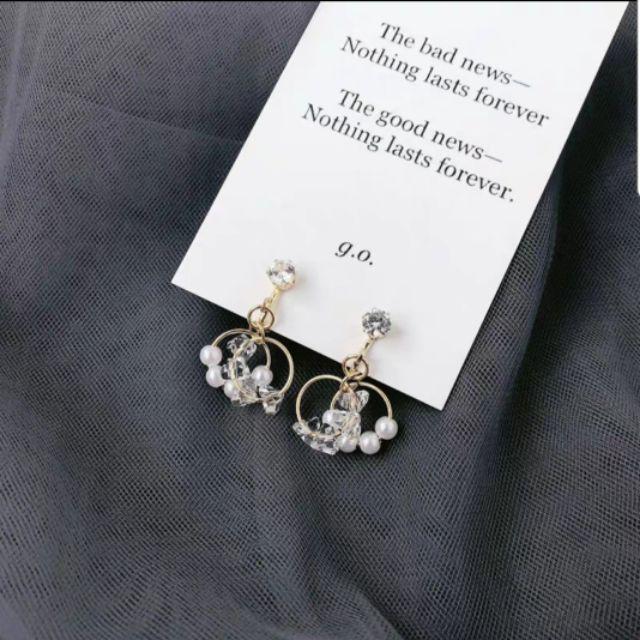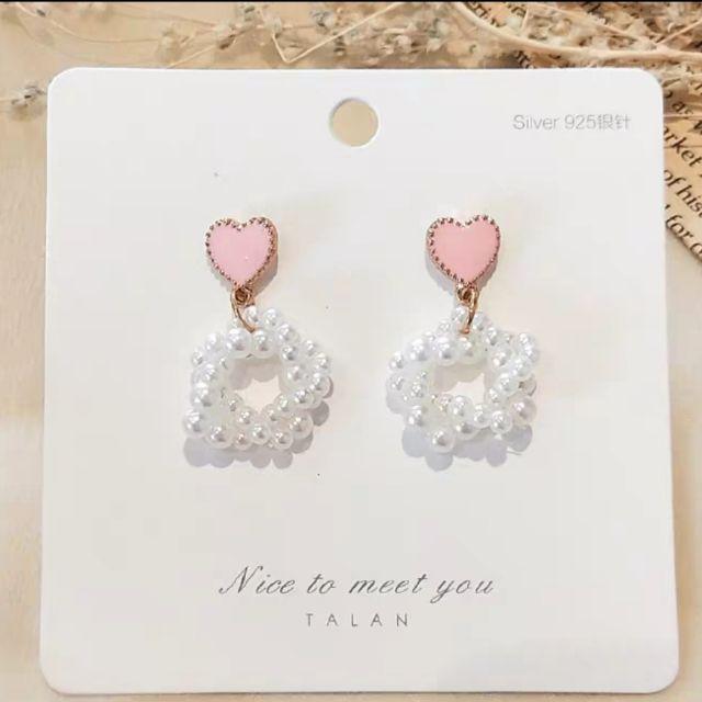 <Free shipping>925 Korean pearl earring stylish and trendy.