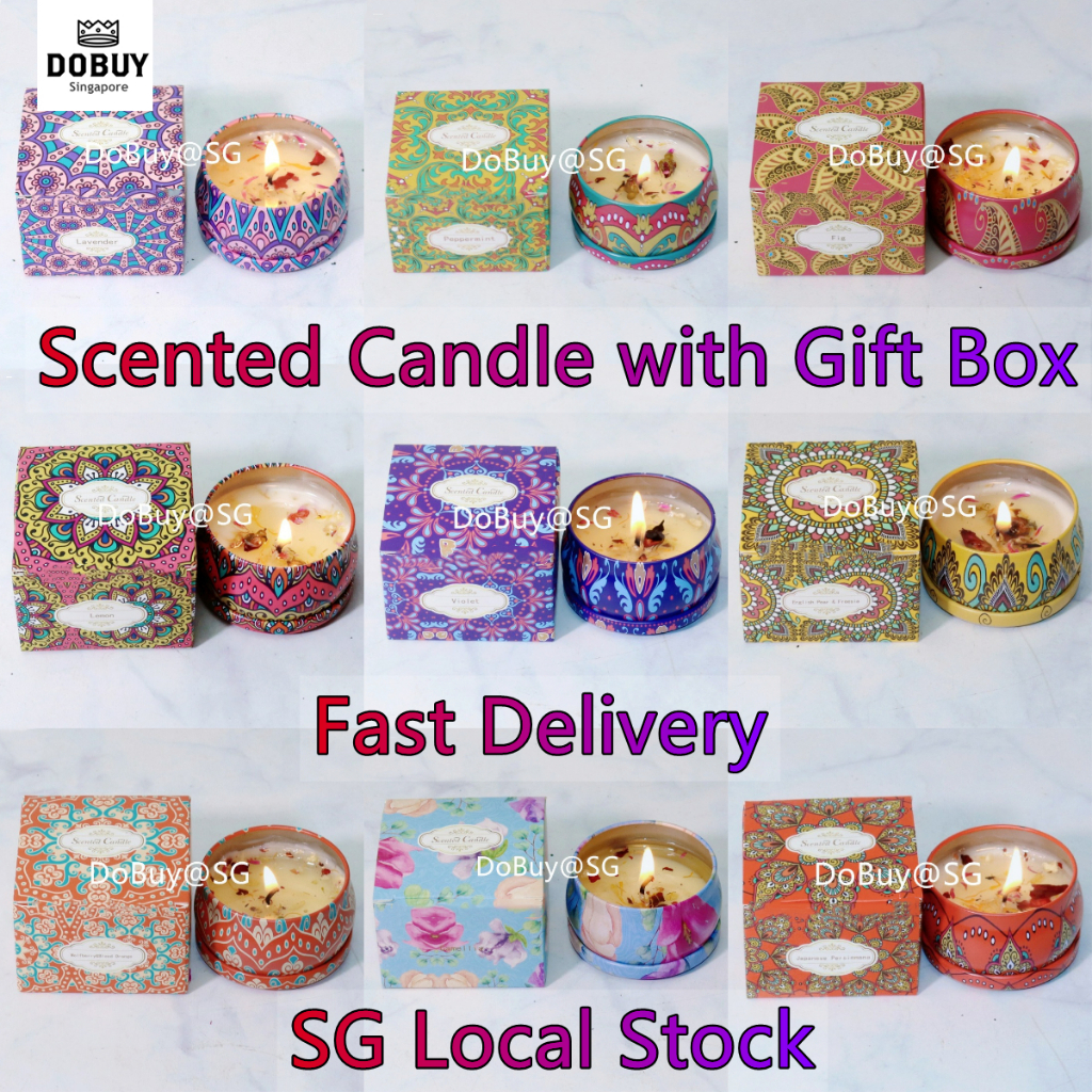 🔥SG LOCAL STOCK🔥Scented Candle with Gift Box 🔥Long Lasting Dried Flower Scented Candle Wedding New Year Xmas Gift