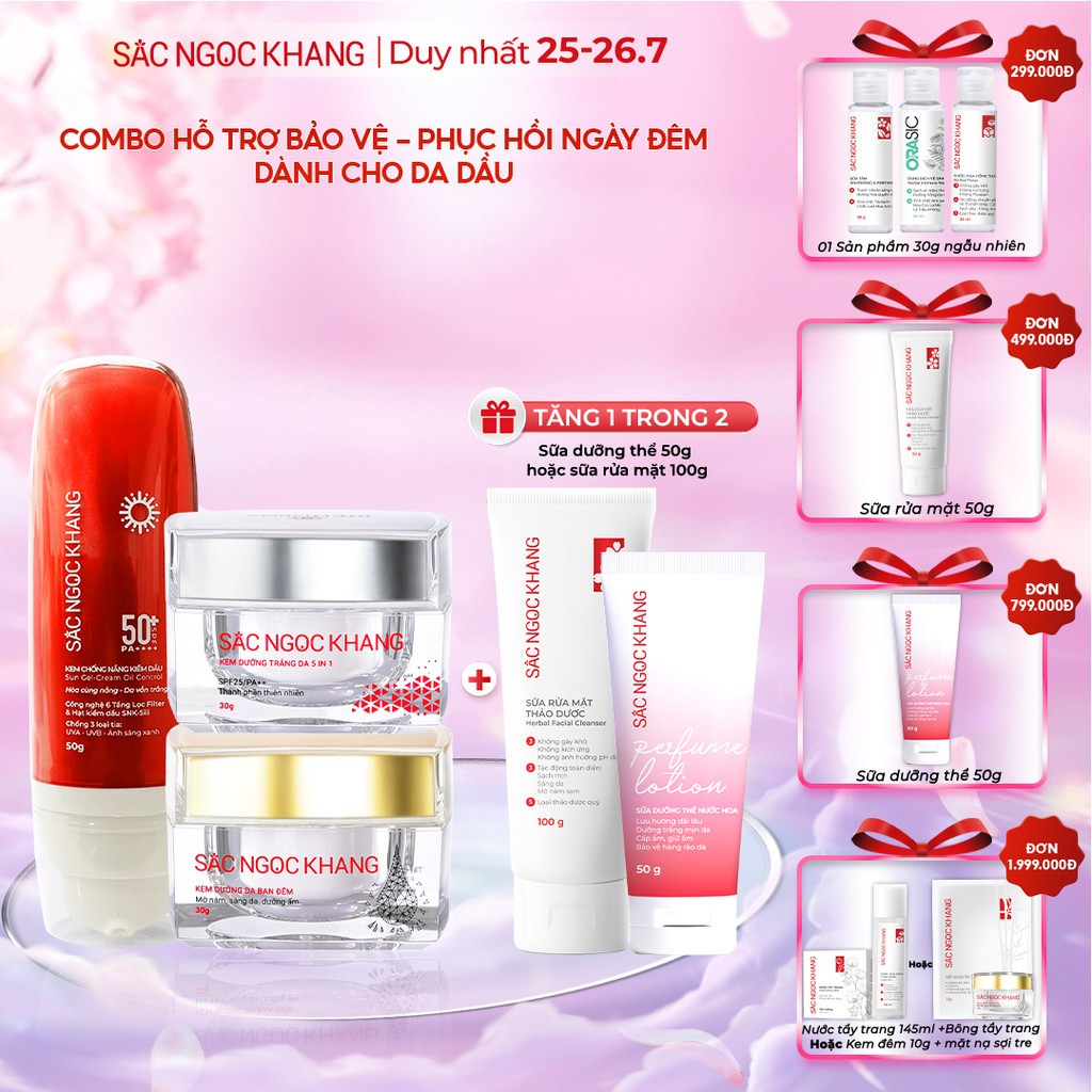 Combo Sac Ngoc Khang Fade Melasma - Tone Enhancement - Comprehensive Protection (Day Cream 30g + Night Cream 30g + Oil-control sunscreen 50g)