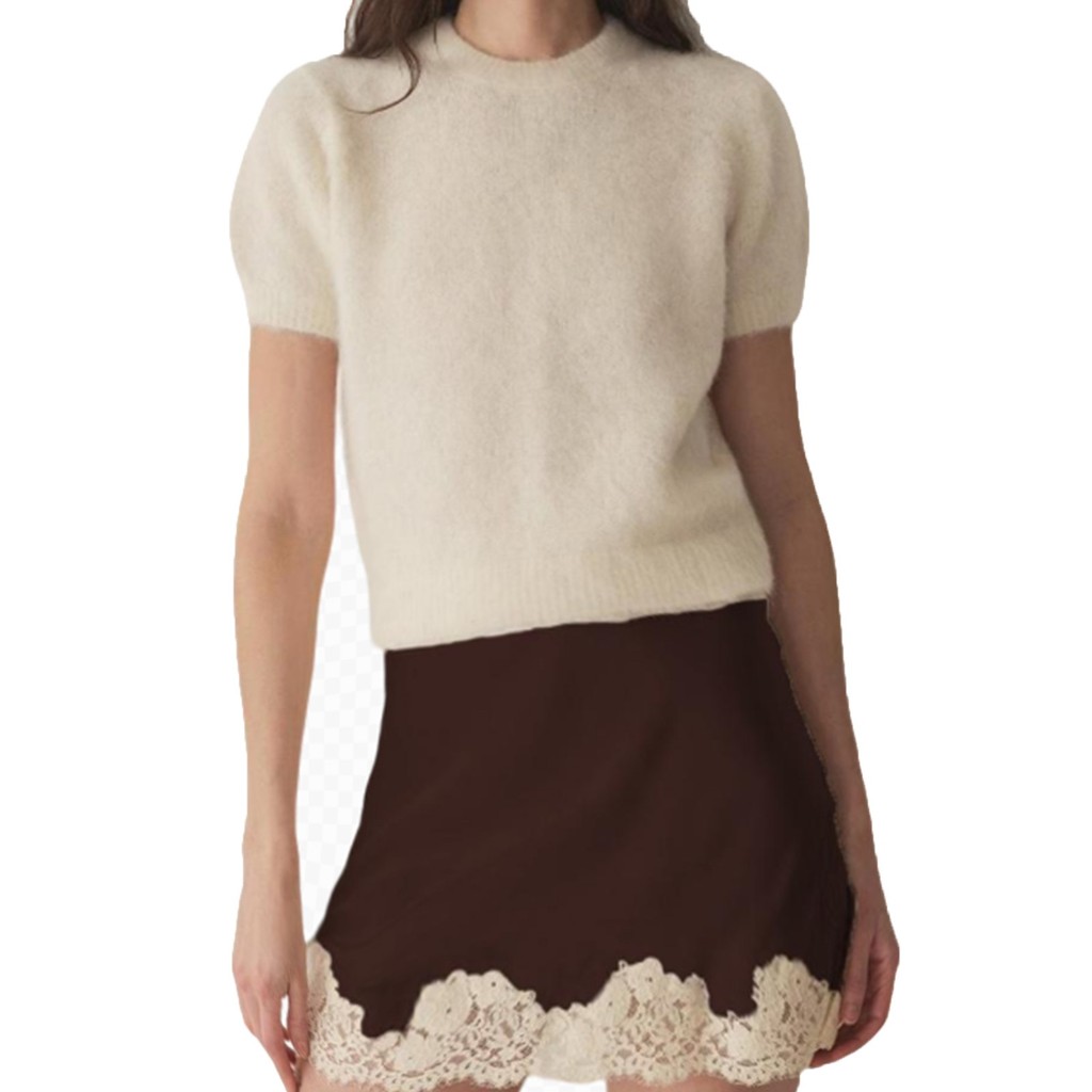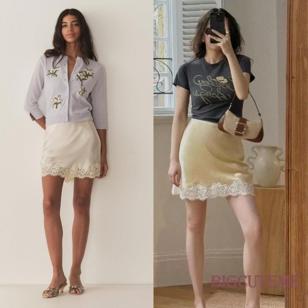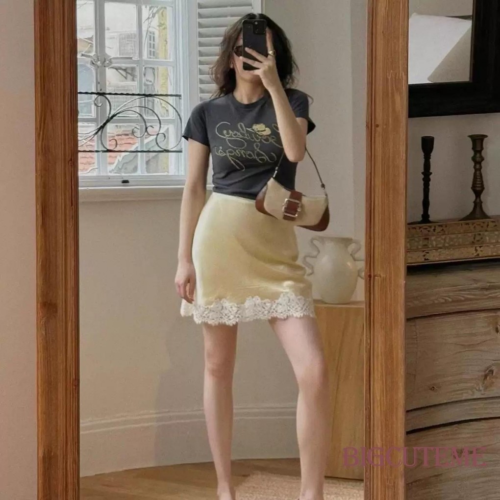 []-Women Retro Lace Patchwork High Waist Summer Vintage Satin Skirt