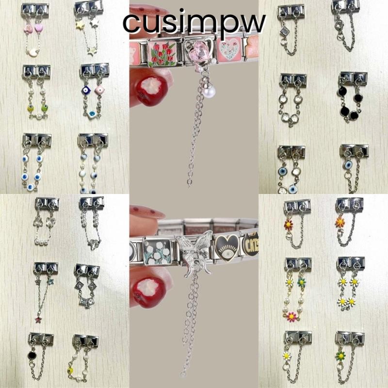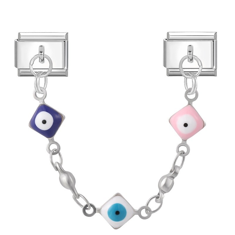 Flower Eye Patterns Charms with Chains Fit for Italian Modular Bracelet DIY Making 9mm Steel Links