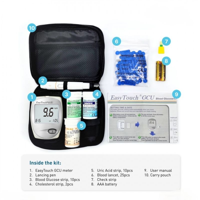 EasyTouch GCU 3-in-1 Blood Glucose, Cholesterol and Uric Acid Meter Complete Kit