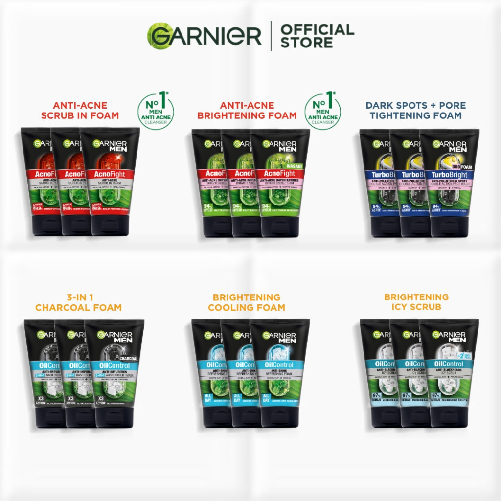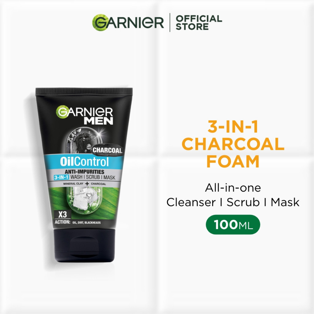 [Triple Pack] Garnier Men Oil Control 3-1 Charcoal Foam (100ml x3)
