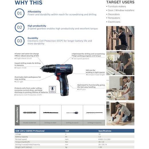 Bosch GSB120-LI PROFESSIONAL CORDLESS COMBI 12V Cordless IMPACT Drill/ Driver