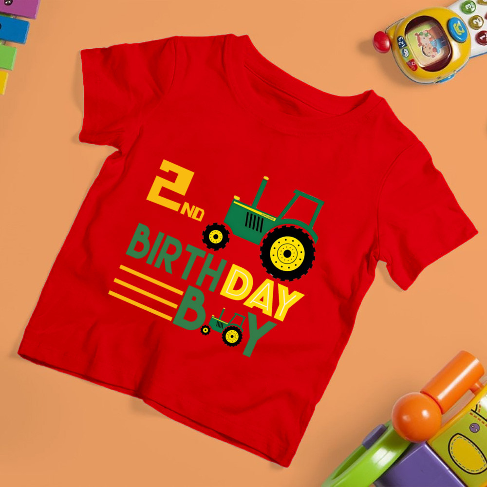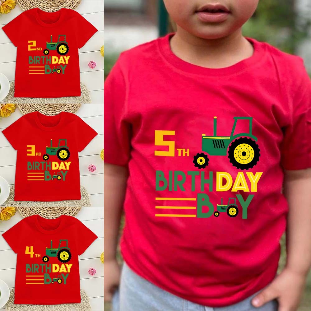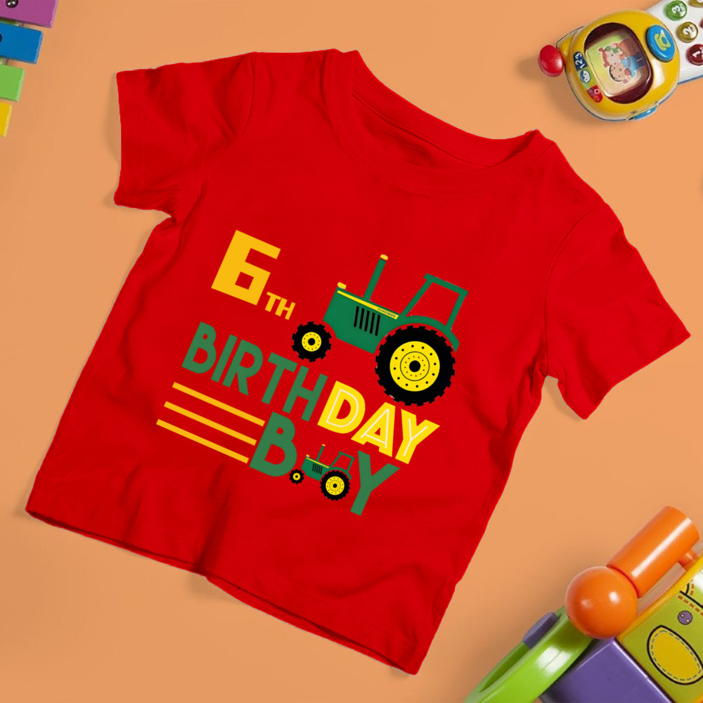 Birthday Boy Car Truck Cartoon Print Children Short Sleeve T-shirt Boys Round Neck Shirt Kids Birthday Shirt Gift