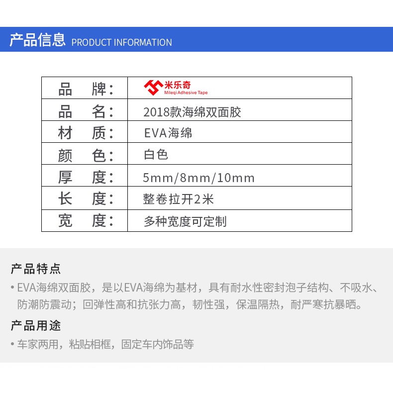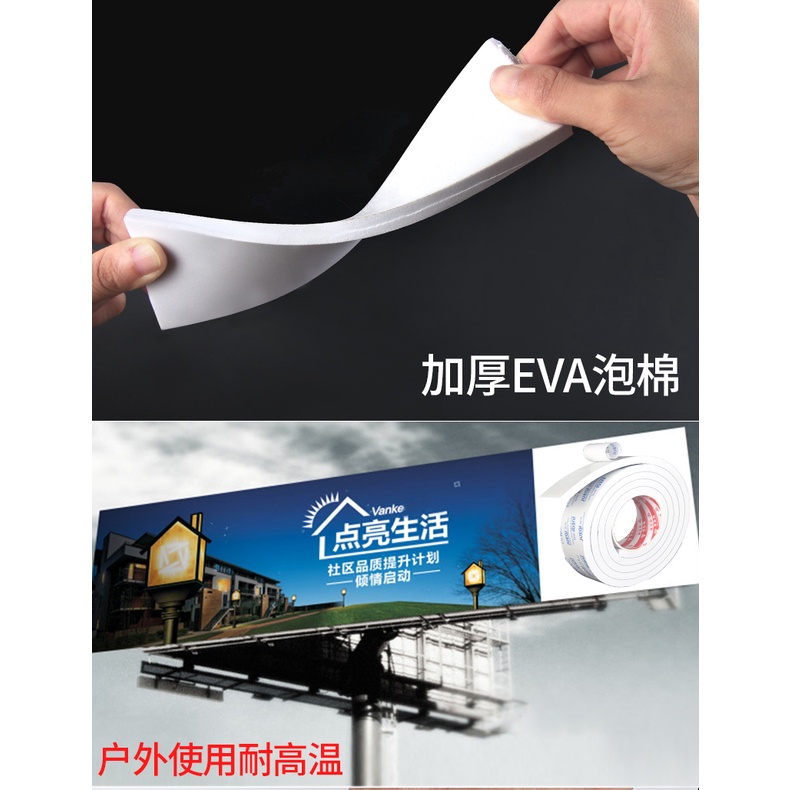 [5/8/10MM Thick] Strongly Upgraded Double-Sided Tape Thickened eva Sticker Sponge White Waterproof Non-Marking Sealing High-Viscosity Foam Wall Fixing Tape Foam Double-Sided Tape