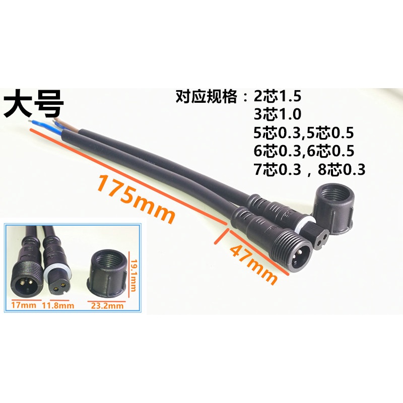 [One Pair Price] Waterproof Male Female Butt Plug Cable Aviation Industrial Power Cord Quick Connector Cable Outdoor LED Cable 2/3/4/5/6 Core Connection Cable 0.3-2.5 Square