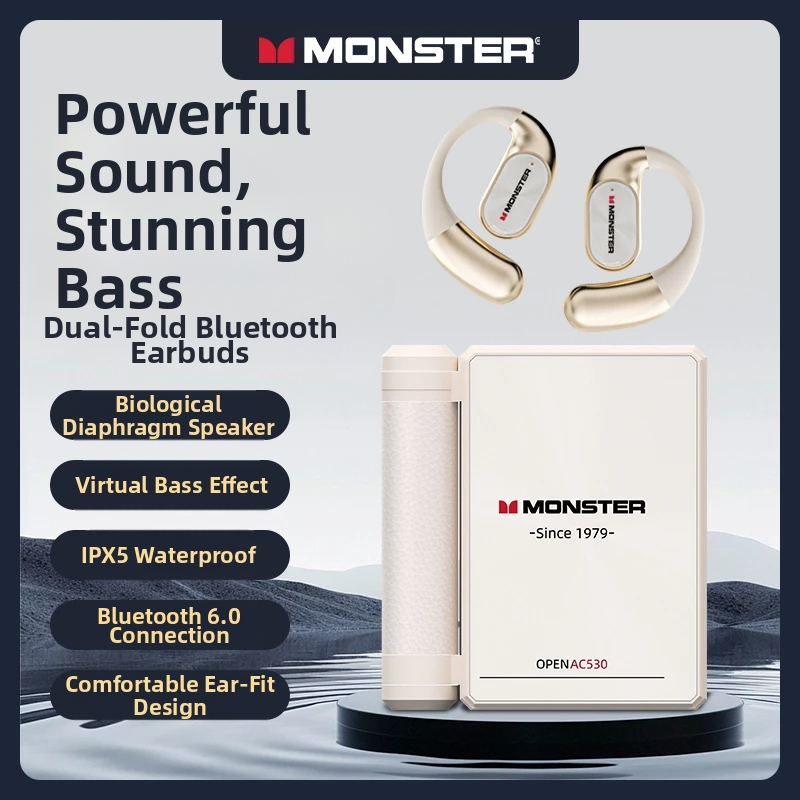 Monster AC530 wireless headphones Bluetooth 6.0 - High quality sound, with bio-ceramic speakers 14.2 mm, IP5 water resistant, battery life up to 30 hours, quick charge in just 10 minutes, lasts up to 1 hour, comfortable to