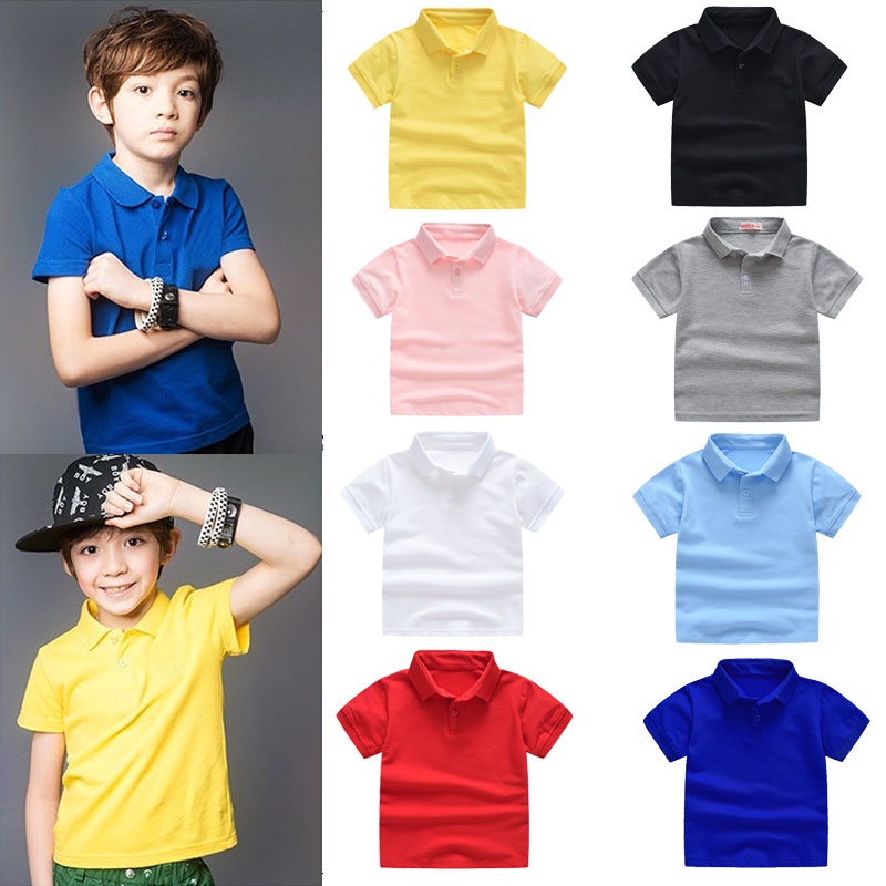 Kids Solid Color Short-Sleeved T-Shirts Baby Boys Girls Polo Shirt Children Breathable Short Sleeve Shirts
