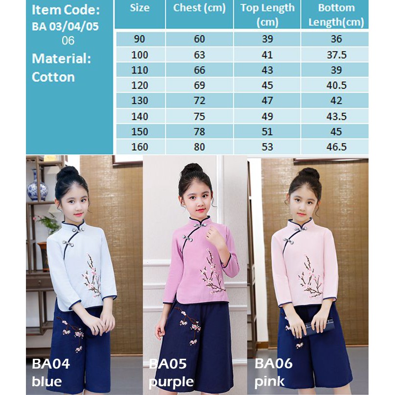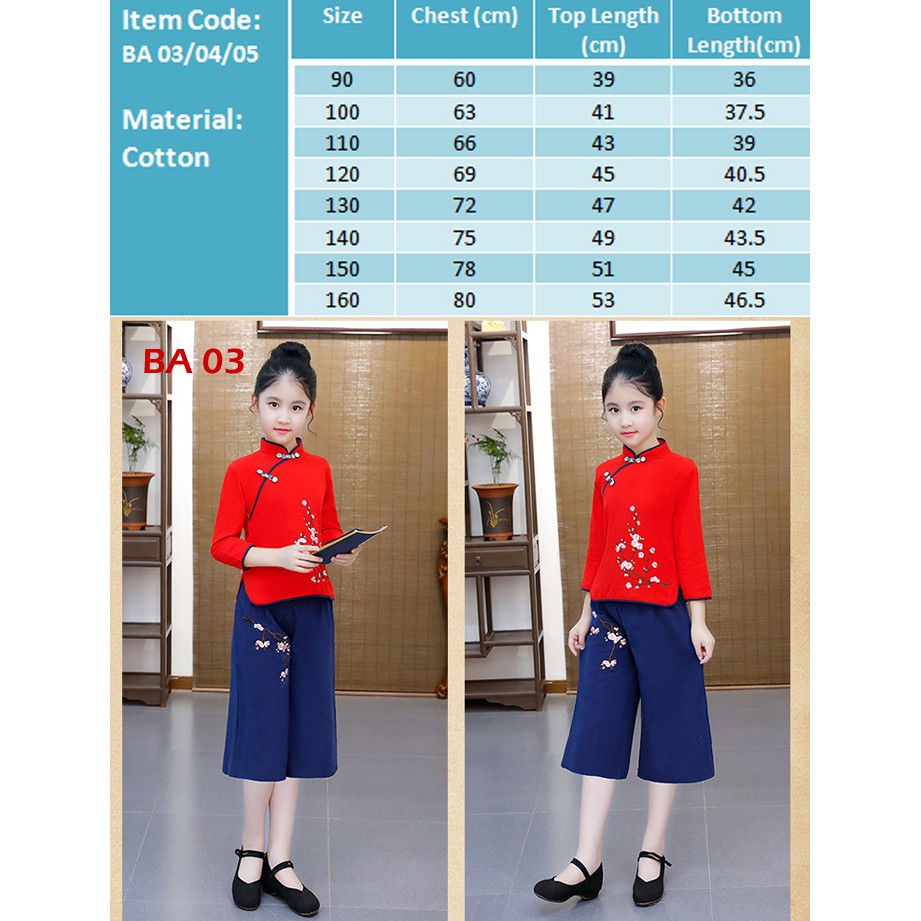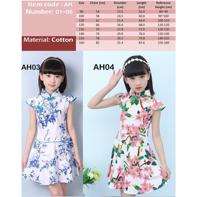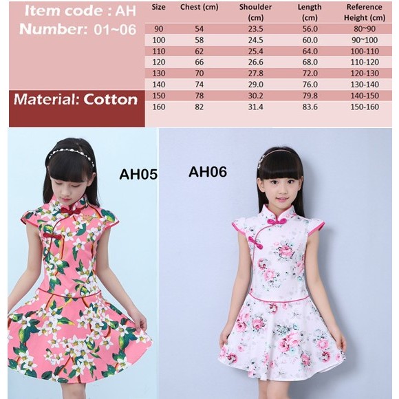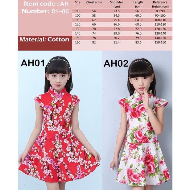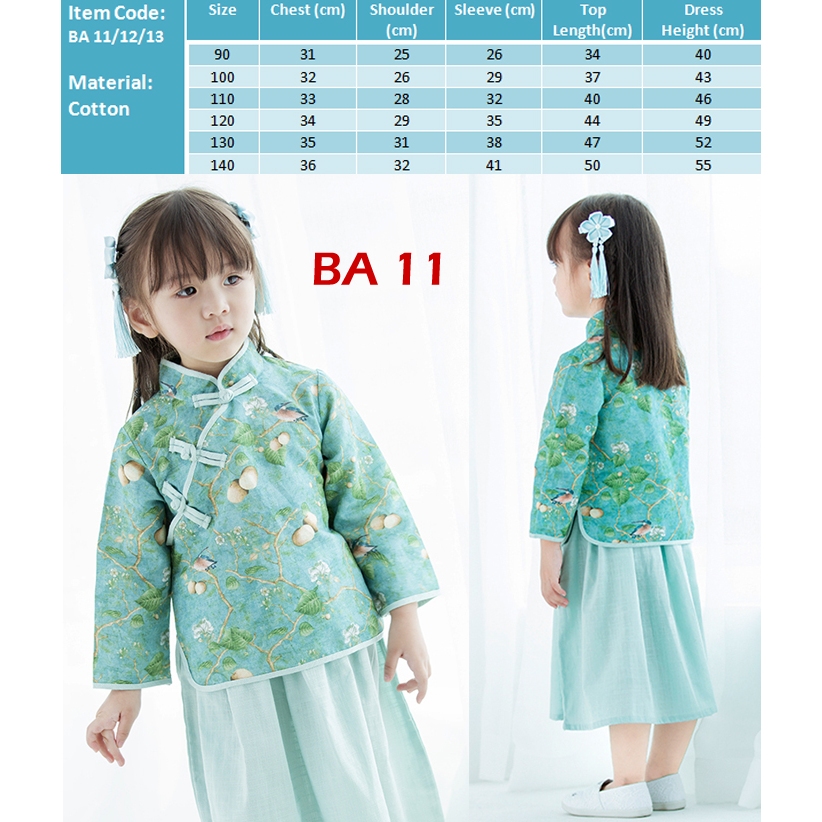 Cheongsam CNY Clothes Cheongsam Dress Qipao Cheongsam Top Kids Cheongsam BA1-6