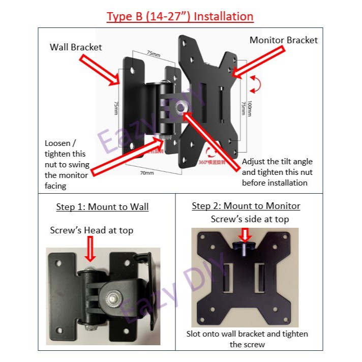 [SG Stock] 14-27" Monitor Bracket Wall Mount