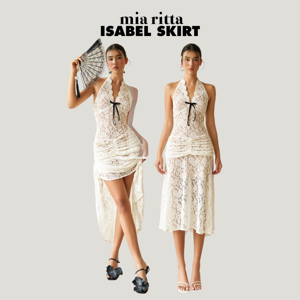 Isabel Skirt Mia Riita V1080 midi Skirt - Ruffled lace Skirt with lining - Floral lace Skirt can be worn in 2 ways