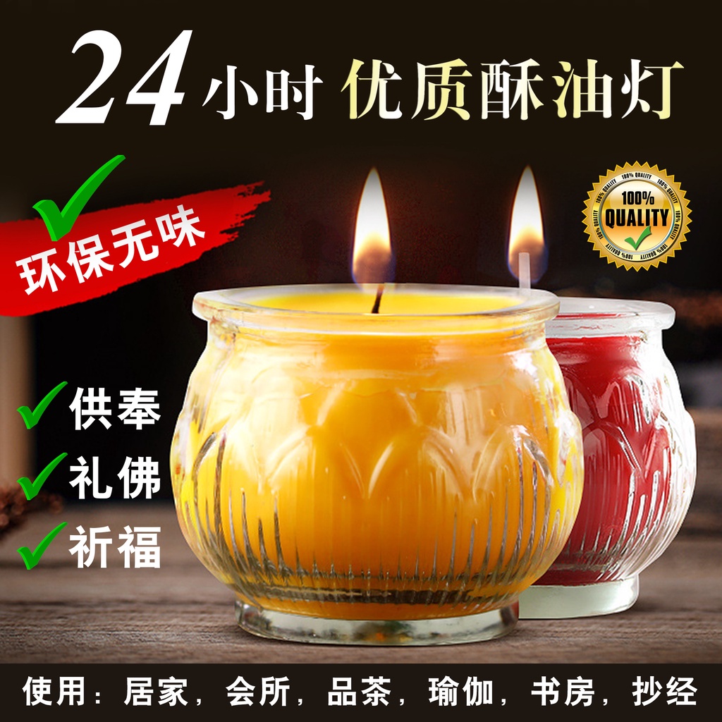 【Wholesale】Smokeless Candle 24 hours Butter Lamp lotus candle home temple for Buddha long bright Candle 中元节 酥油灯 酥油蜡烛