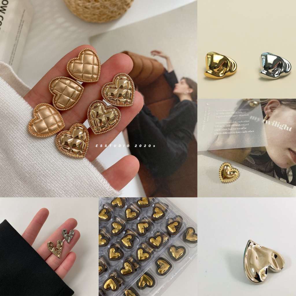 10 Pcs/set 18mm Korean Style Gold Heart Shape Metal Handmade Buttons for Women Hat Shoes Decoration
