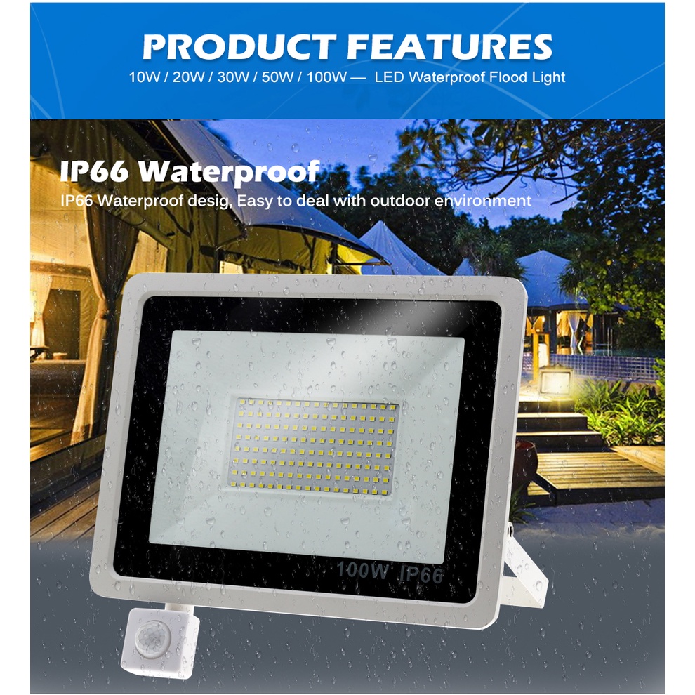 LED FloodLight PIR Motion Sensor LED Flood Light IP66 Waterproof Spotlight Wall Outdoor Lighting White Warm White