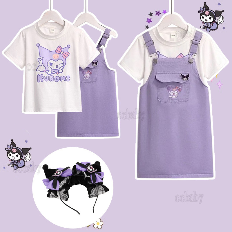 New Style Kids Girl Terno Kuromi Shirt + Suspender Skirt Kids Girl Clothes Set for Birthday Photos Summer Kuromi Outfit Fashion Dress Up