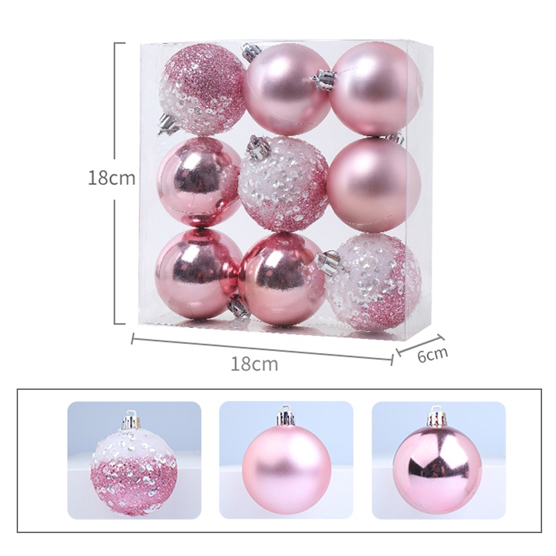 9 PCS Christmas Ball Ornaments xmas Tree Decorations Hanging Balls for Home New Year Party Decor - 2.36inch, Pink