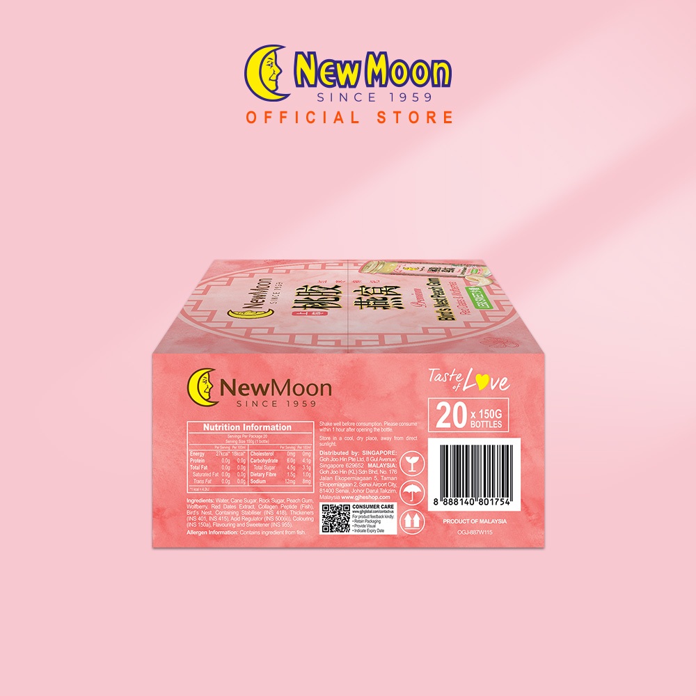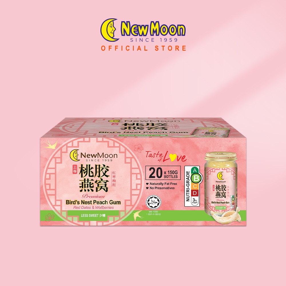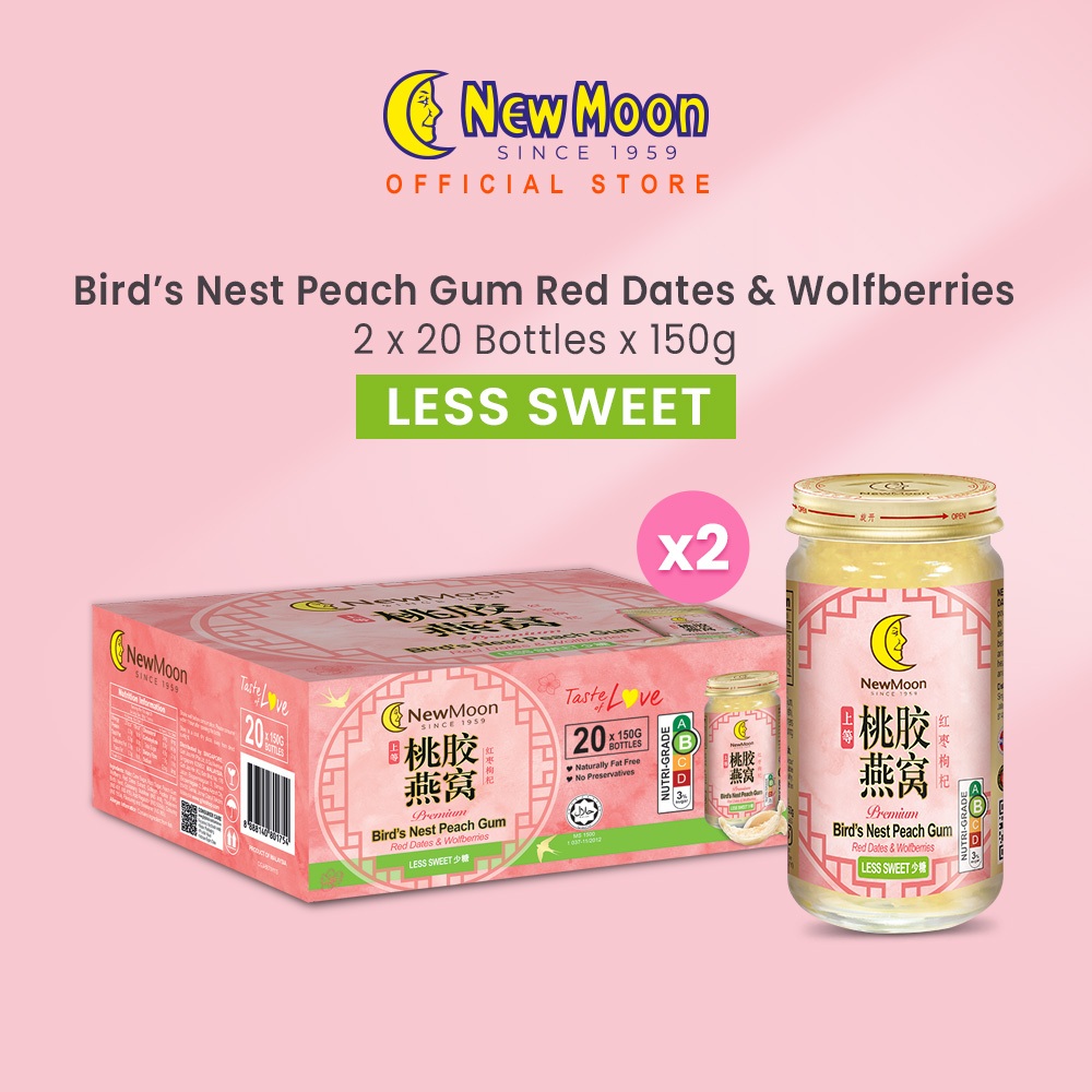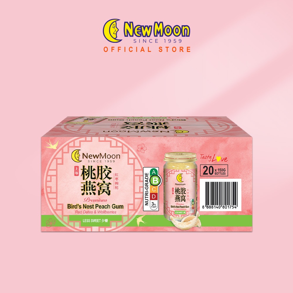 [2 Cartons Deal - Less Sweet] New Moon Bird’s Nest PEACH GUM with Red Dates & Wolfberries 150g x 20 bottles