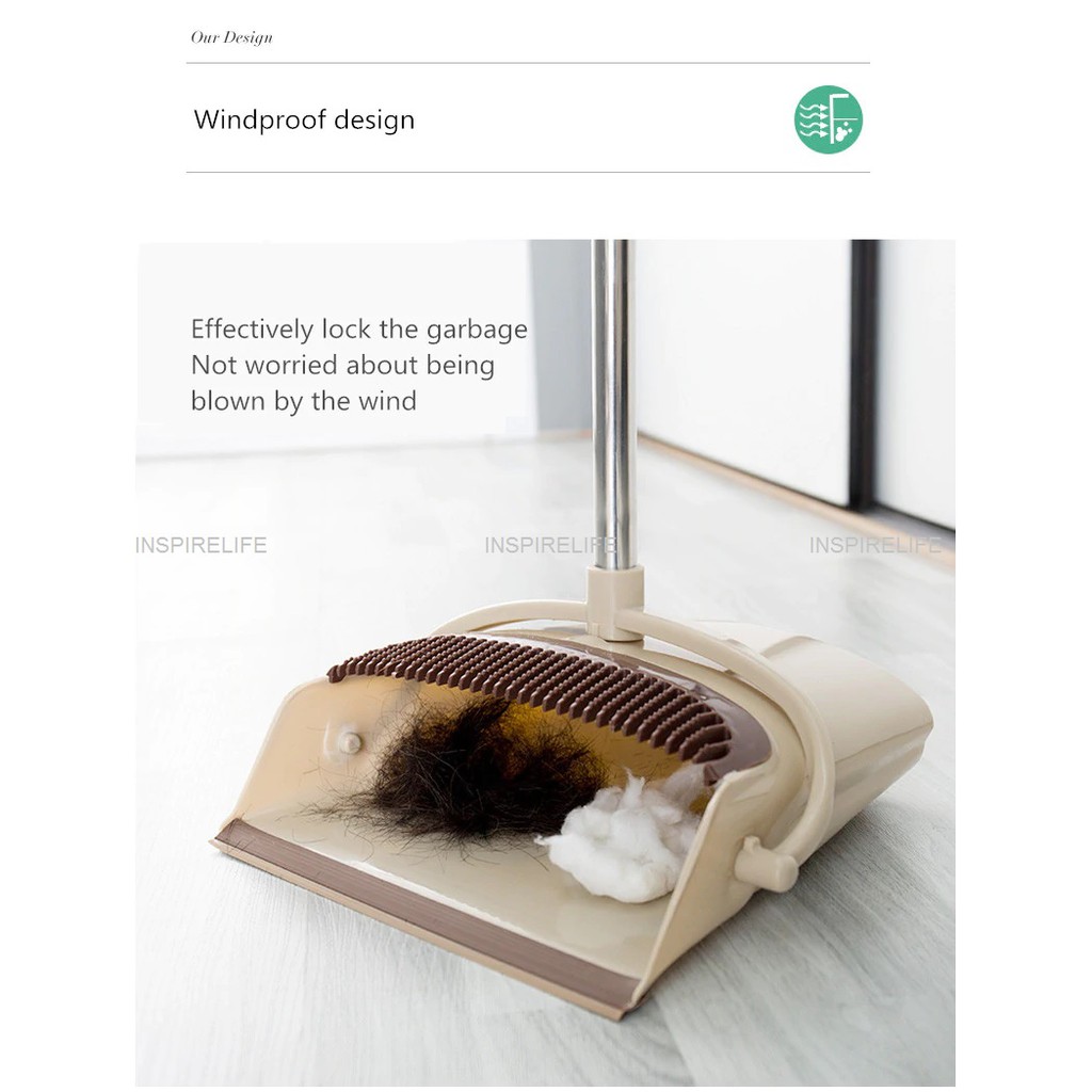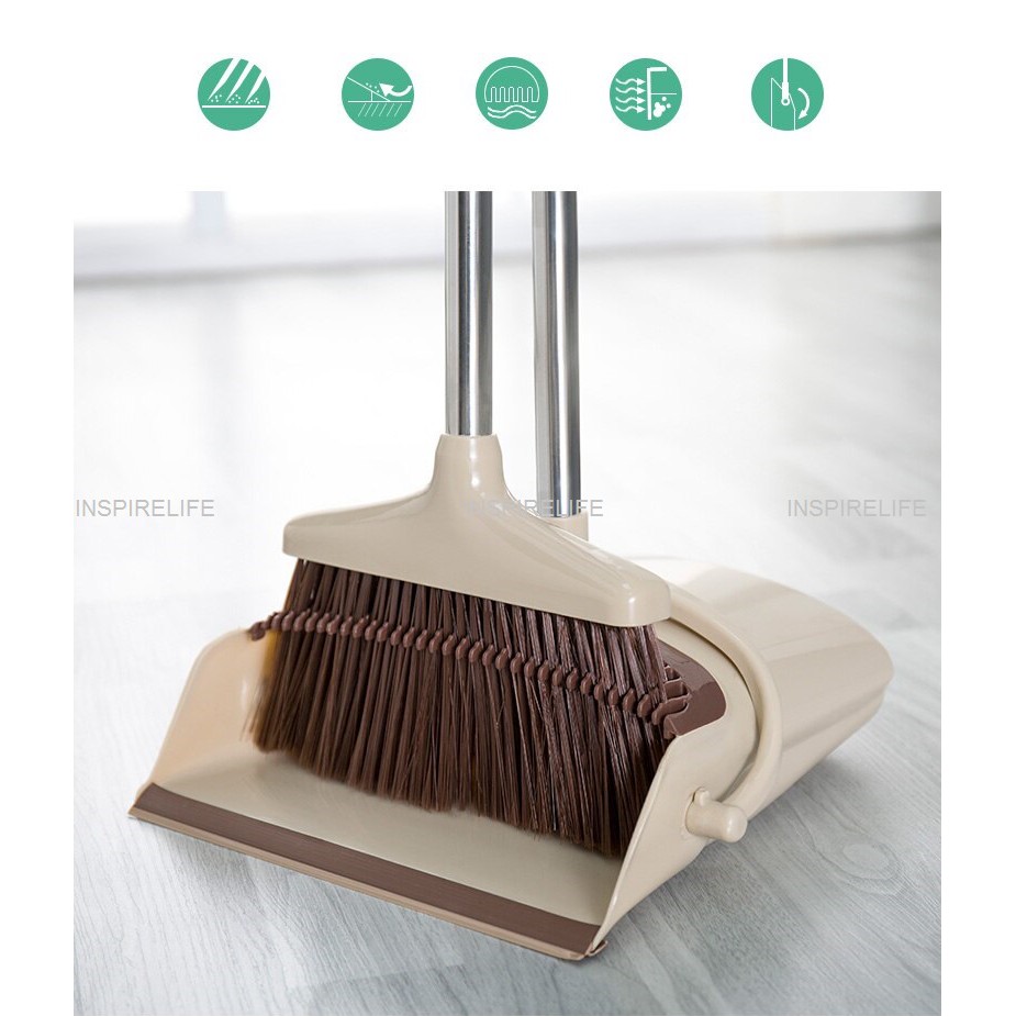 Cleaning Rotatable Windproof Broom Sweep and Dustpan Set Stainless Steel Non-Slip Handle Hair Broom Floor Sweeping
