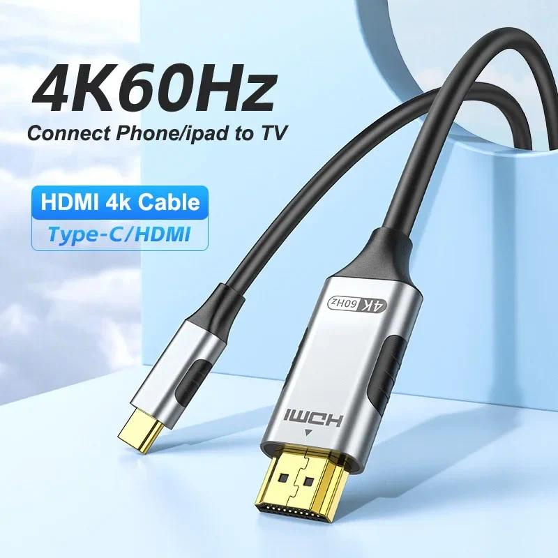 USB C to HDMI Cable 4K 60Hz Type C to HDMI Adapter Cable for MacBook Air iPad Samsung Phone USB C to HDMI Displays Cable