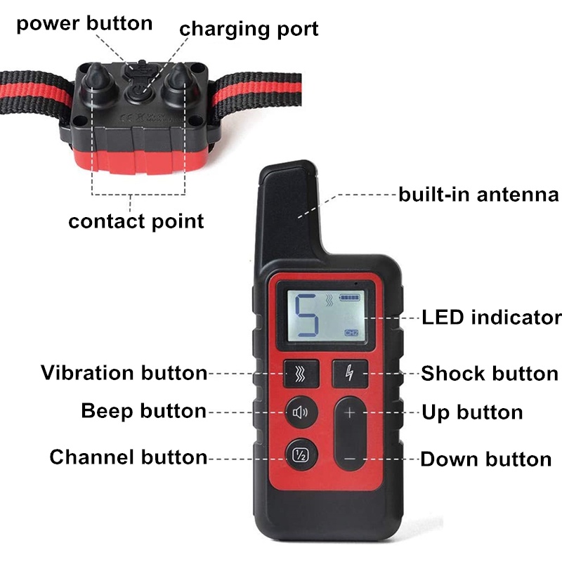 500m Remote Dog Training Collar Rechargeable Waterproof Pet Dog Electric Shock Collar Anti-Bark Trainer