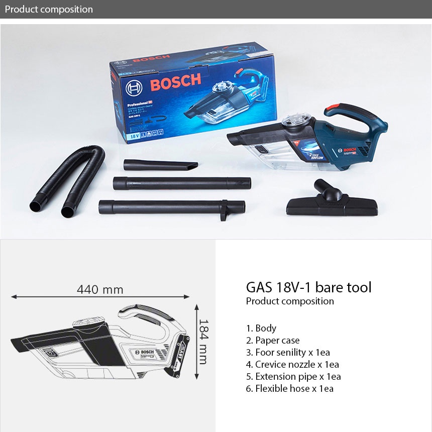 Bosch GAS 18V-1 rechargeable handy vacuum cleaner - body only