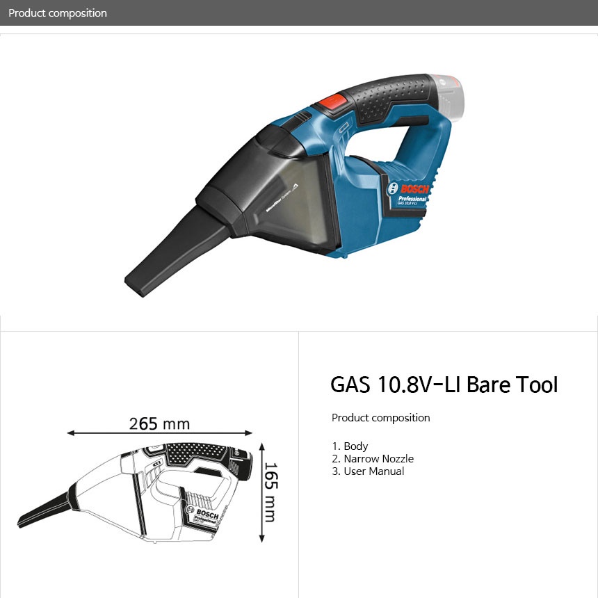 Bosch GAS 10.8V-LI rechargeable handy vacuum cleaner body