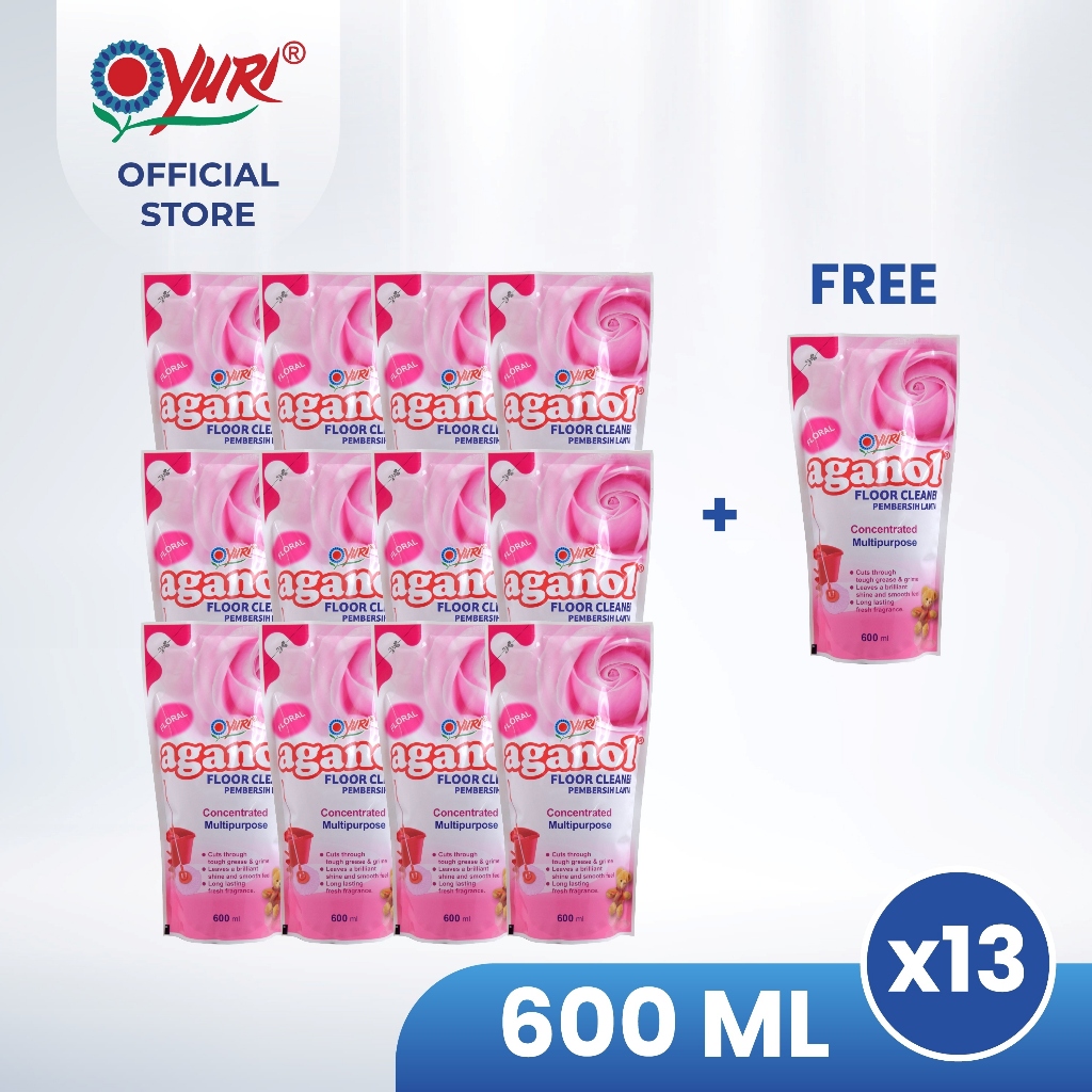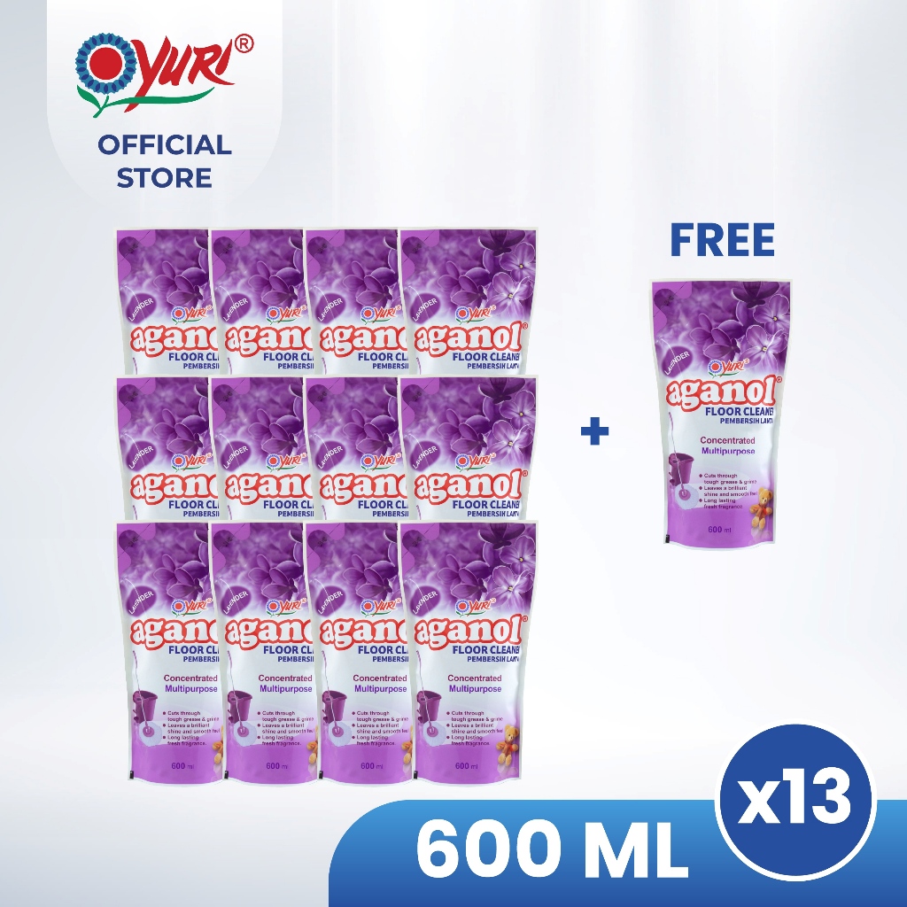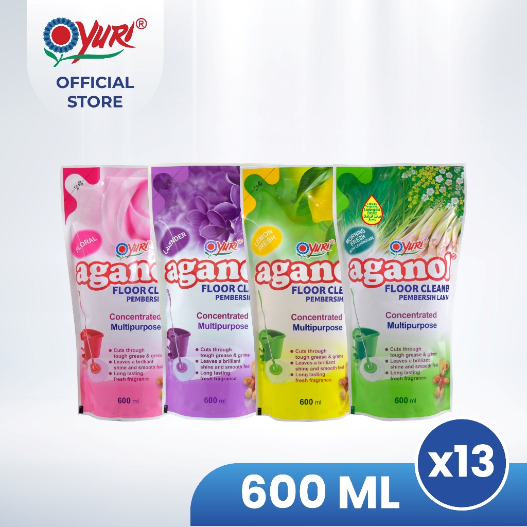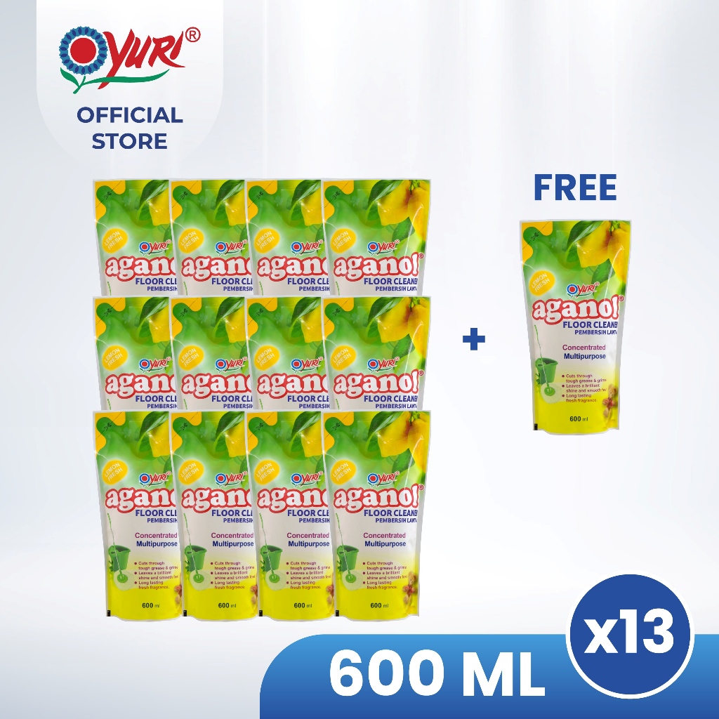 [12+1 FREE] Yuri Aganol® Floor Cleaner Refill 600ml x13 | Advanced Germ-Shield & Degreasing Power