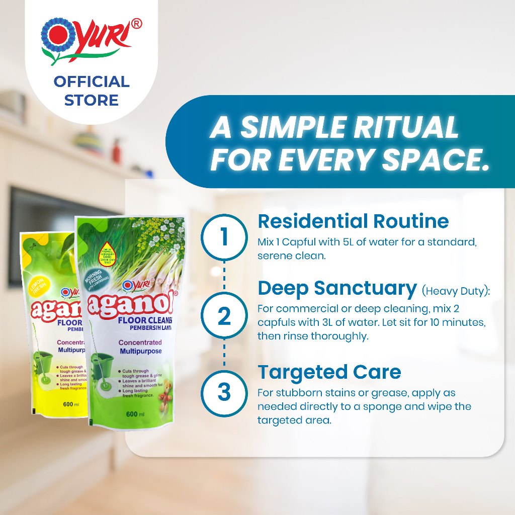 [6+1 FREE] Yuri Aganol® Floor Cleaner Refill 600ml x7 | Advanced Germ-Shield & Degreasing Power