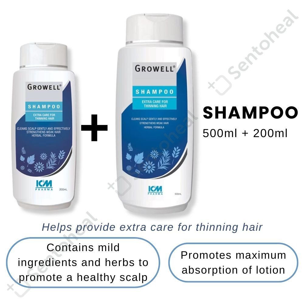 ICM Pharma Growell Shampoo Extra care for Thinning Hair-7 highly-regarded plant extracts 500ml/ 200ml