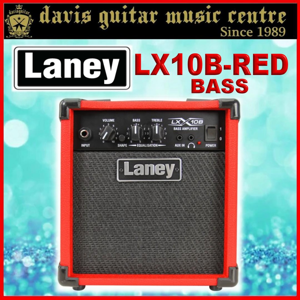 Laney LX-10B Bass Guitar Amplifier Red Compact Plug and Play Practice Amplifier with 2 Band EQ and Mini-Jack AUX Input